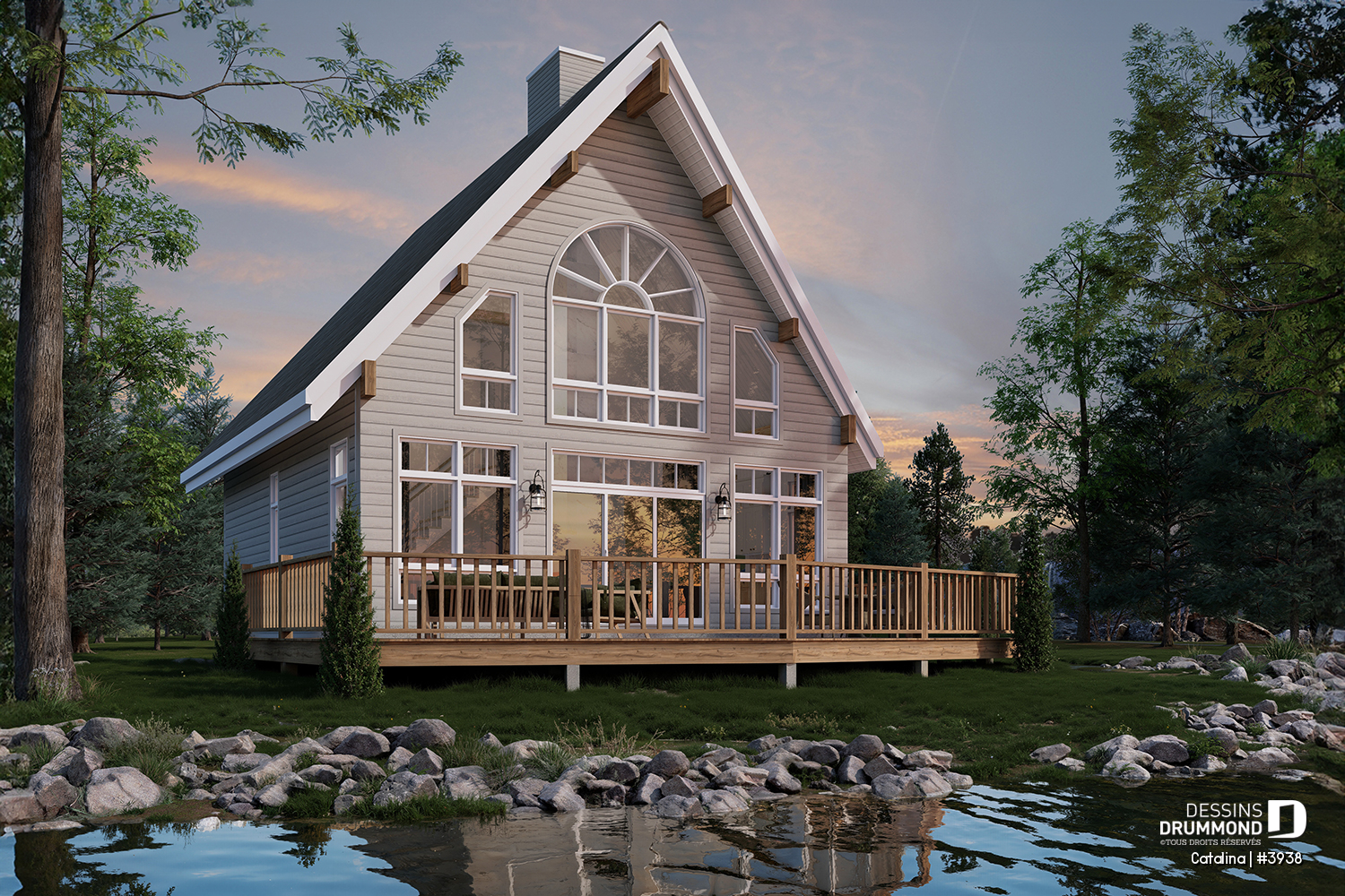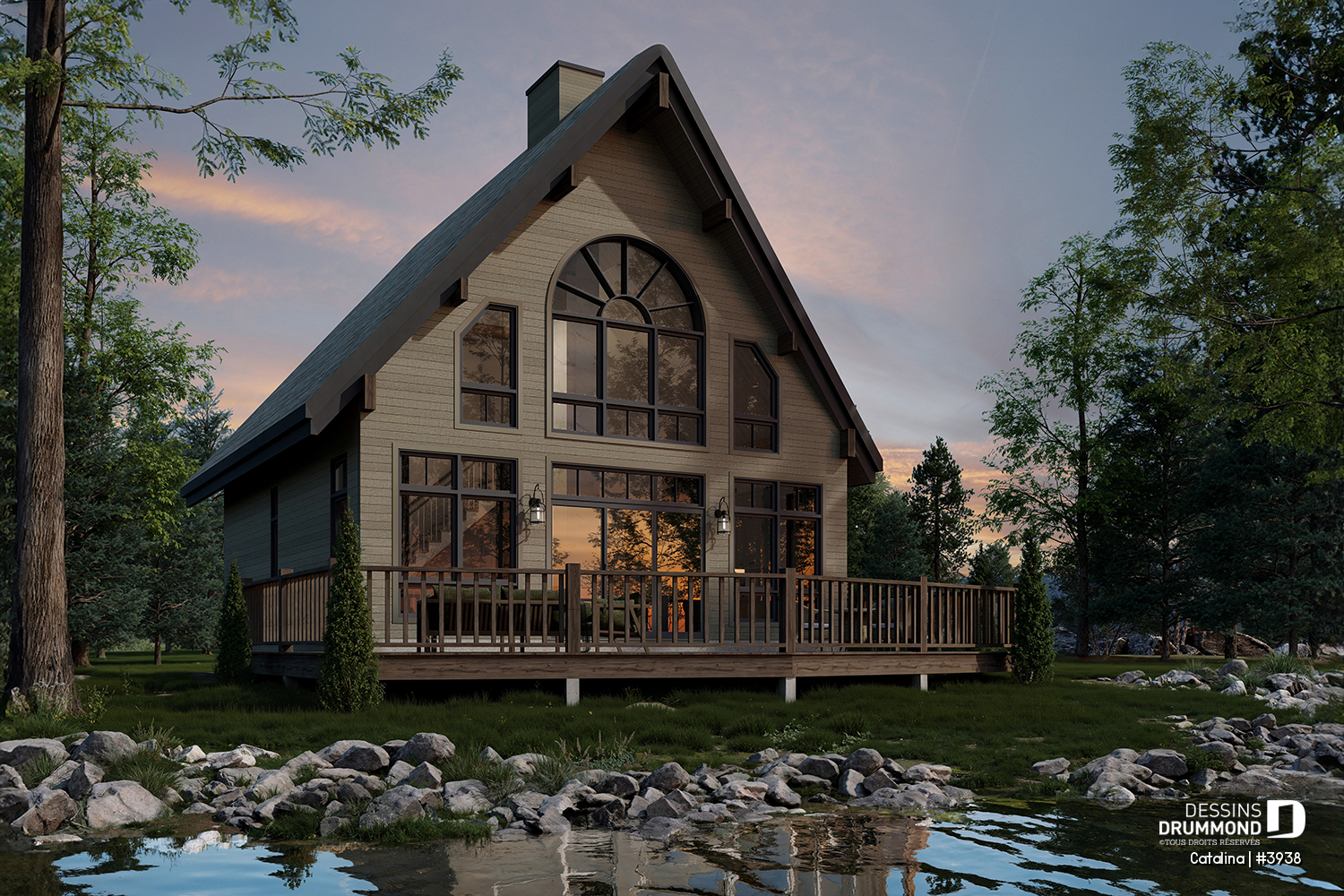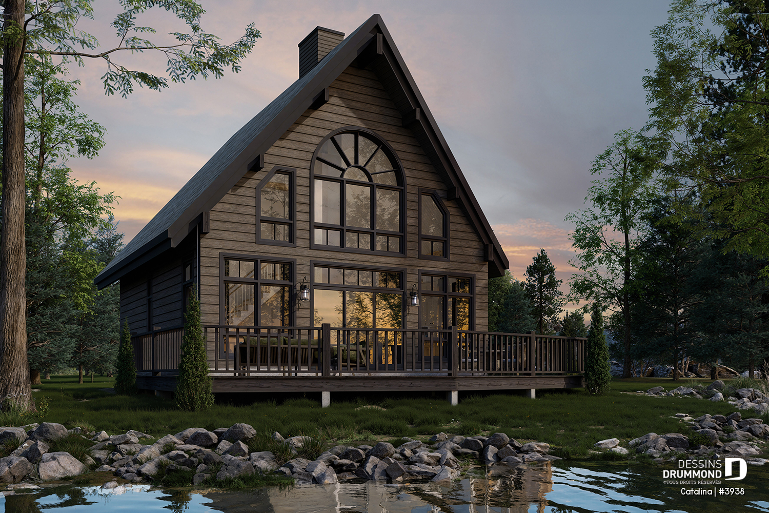 Plan de chalet de type A-frame ( à toit en A ), superbe luminosité, plancher convivial, mezzanine à l'étage