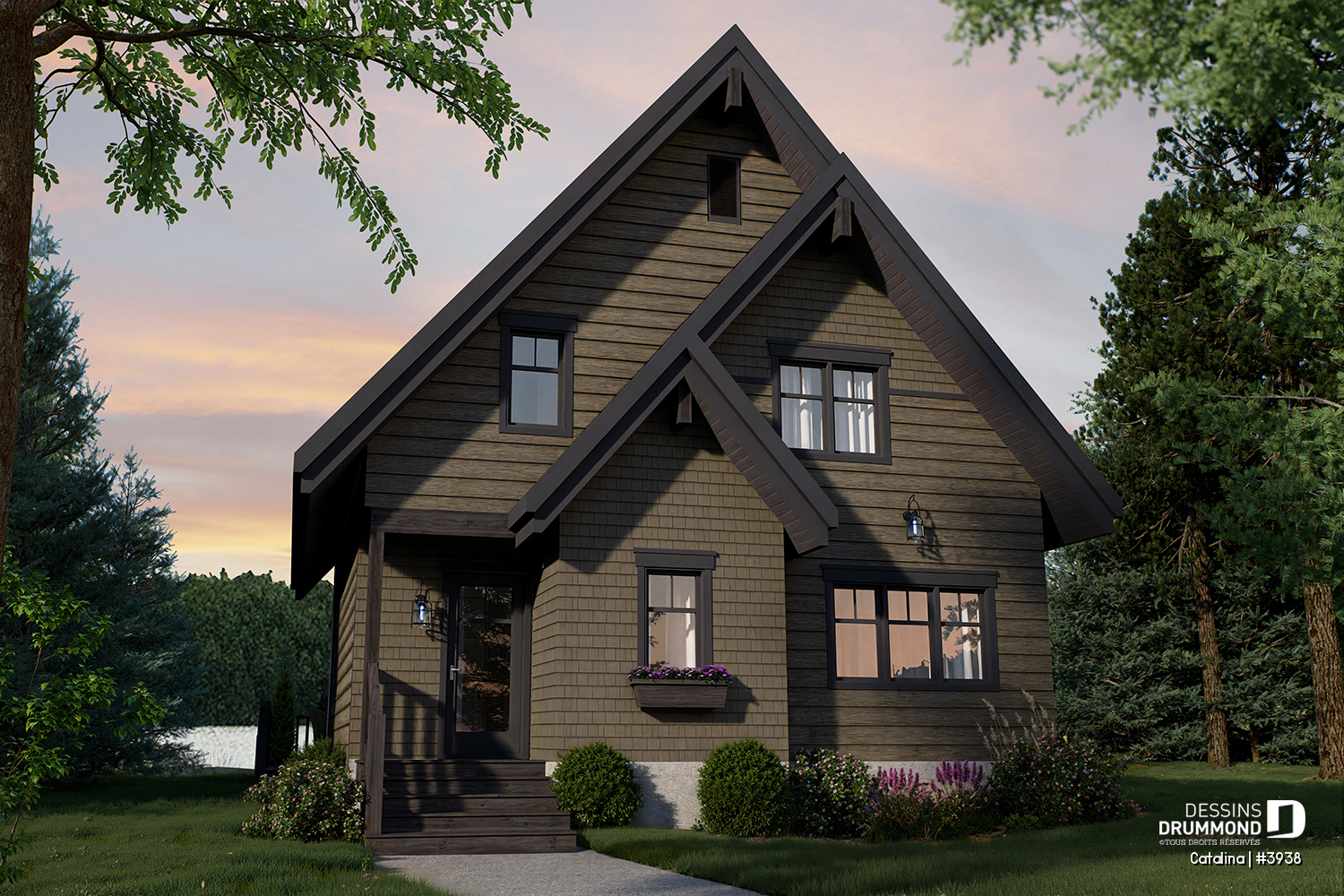 Plan de chalet 4 saisons rustique avec plafond cathédrale et mezzanine lumineuse