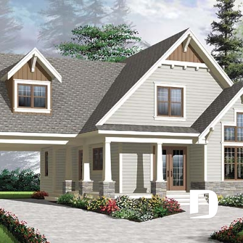 Vue avant - MODÈLE DE BASE - Chalet ou maison champêtre, 2 à 4 chambres, carport, mezzanine, cathédral, espace boni à aménager - Celeste 2