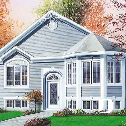Plan de maison abordable, 2 chambres, à entrée split, îlot à la cuisine