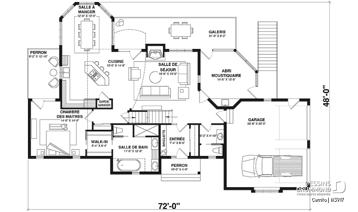 Abri moustiquaire, Foyer, Mezzanine, Ilôt, Garage latéral, Vue paronamique, Aire ouverte, Suite d'invités, Suite des maîtres à l'étage