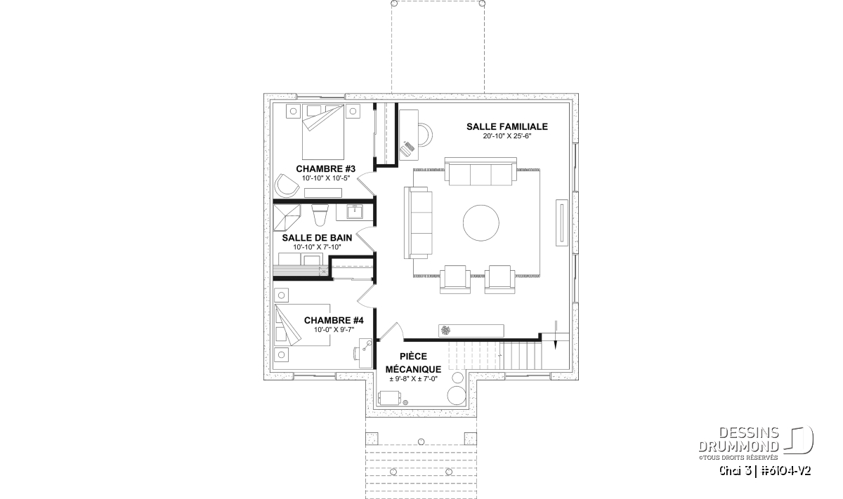 *Si vous souhaitez acheter le plan du sous-sol aménagé, tel que présenté sur la page de ce plan, veuillez sélectionner cette option dans le panier d'achat, dans la section "Sélectionner votre fondation". Si vous ne sélectionnez pas cette option, vous recevrez le sous-sol non fini, sans frais additionnel.