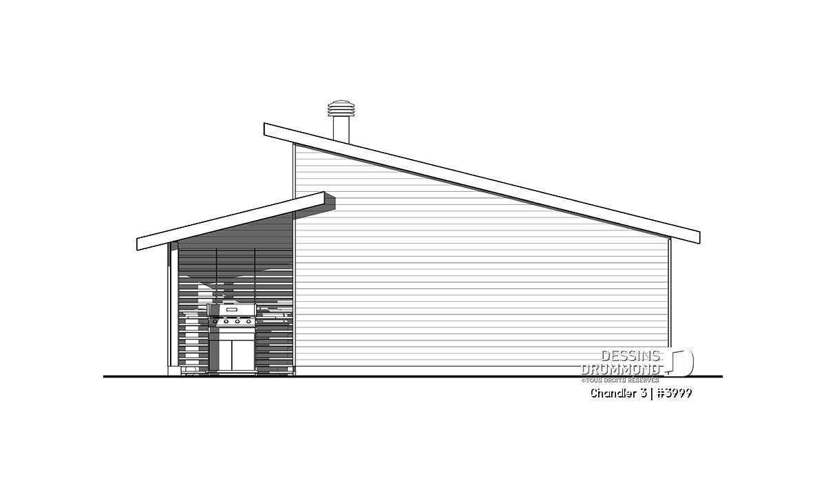 Pratique secteur abritée sur le côté pouvant loger le BBQ et autres.