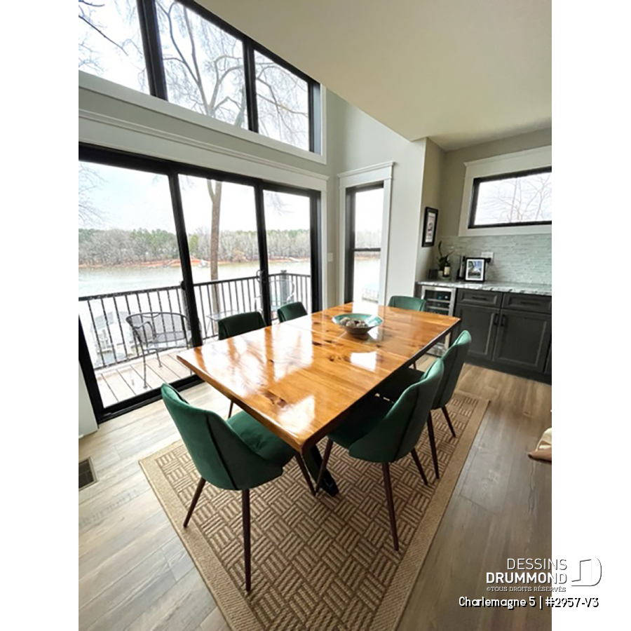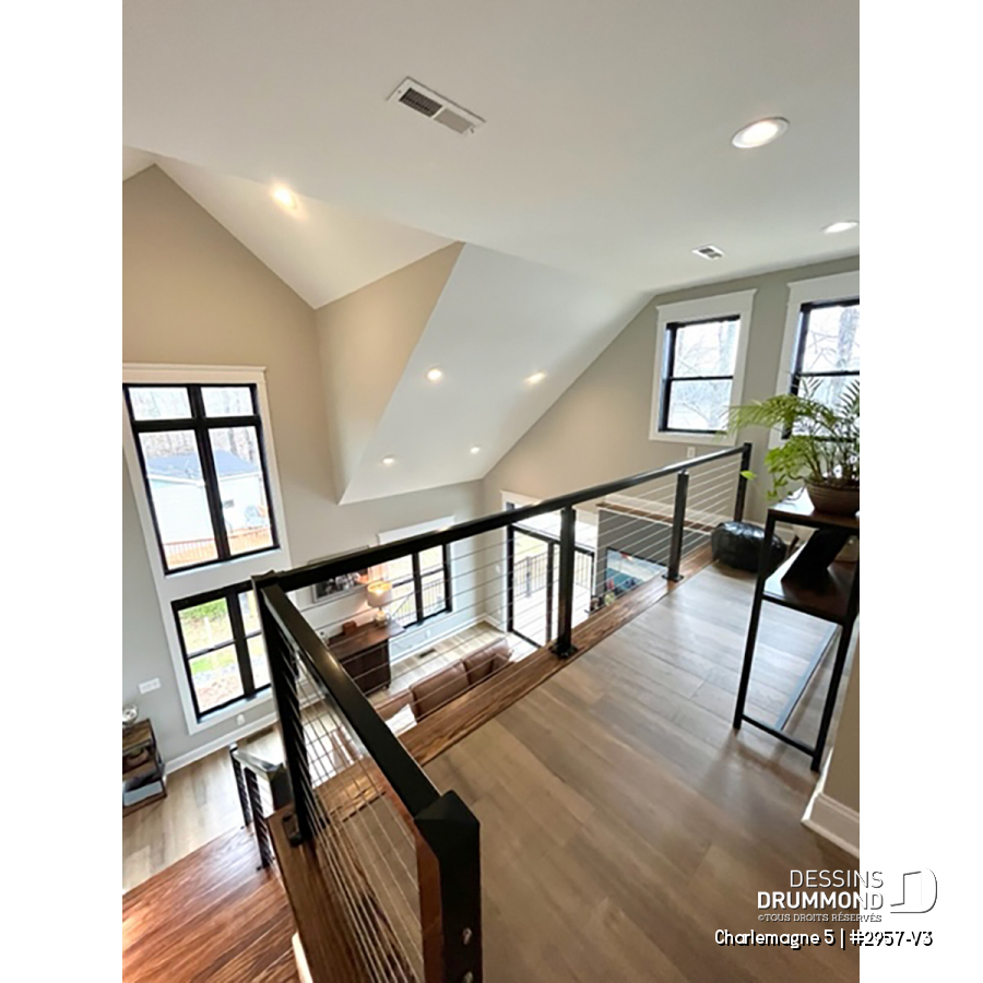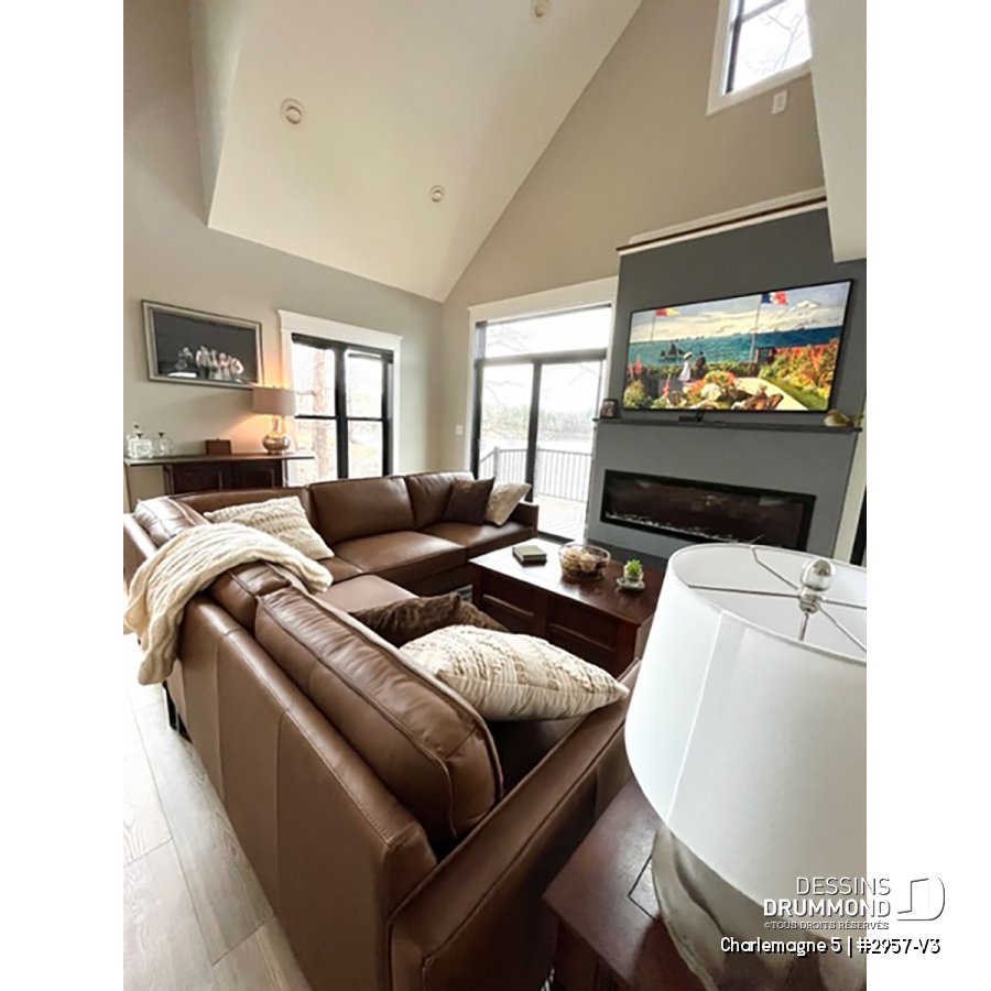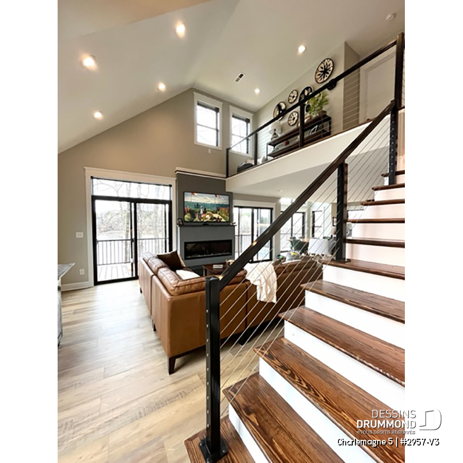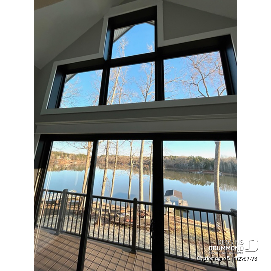 Cependant, si des poutres ou moulures de bois ou imitation de bois sont installées dans un plafond cathédral (sur nos illustrations ou photos), elles ne sont pas incluses dans les estimations. À noter que les poutres de bois illustrées sur l'extérieure de nos maisons sont incluses dans le coût, mais elles sont «capées » et non en bois massif.