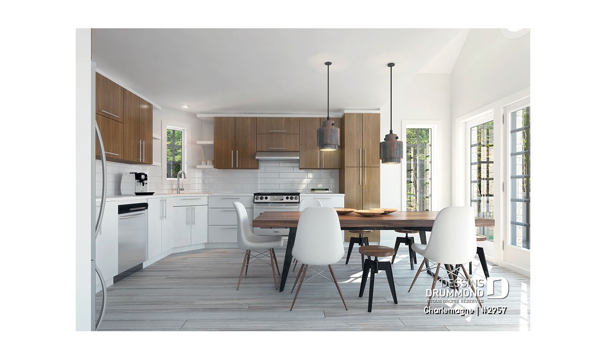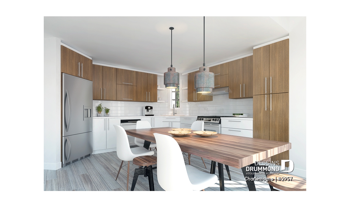 Cuisine spacieuse à aire ouverte, idéale pour intégrer une grande table à manger.
