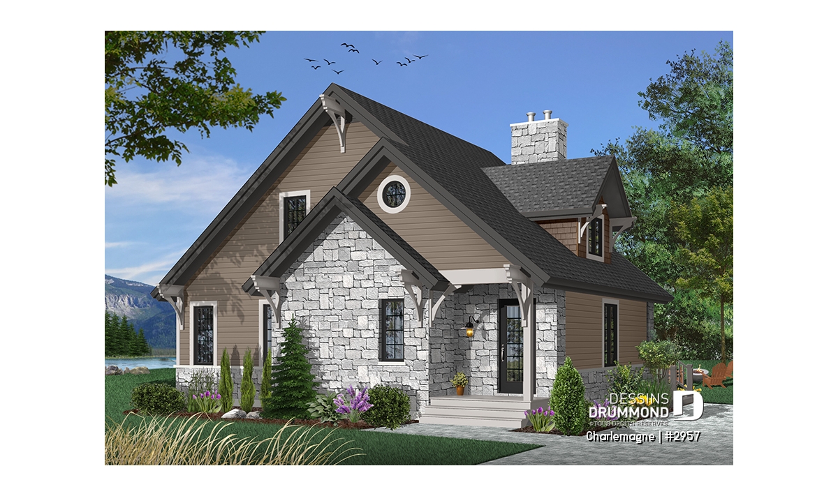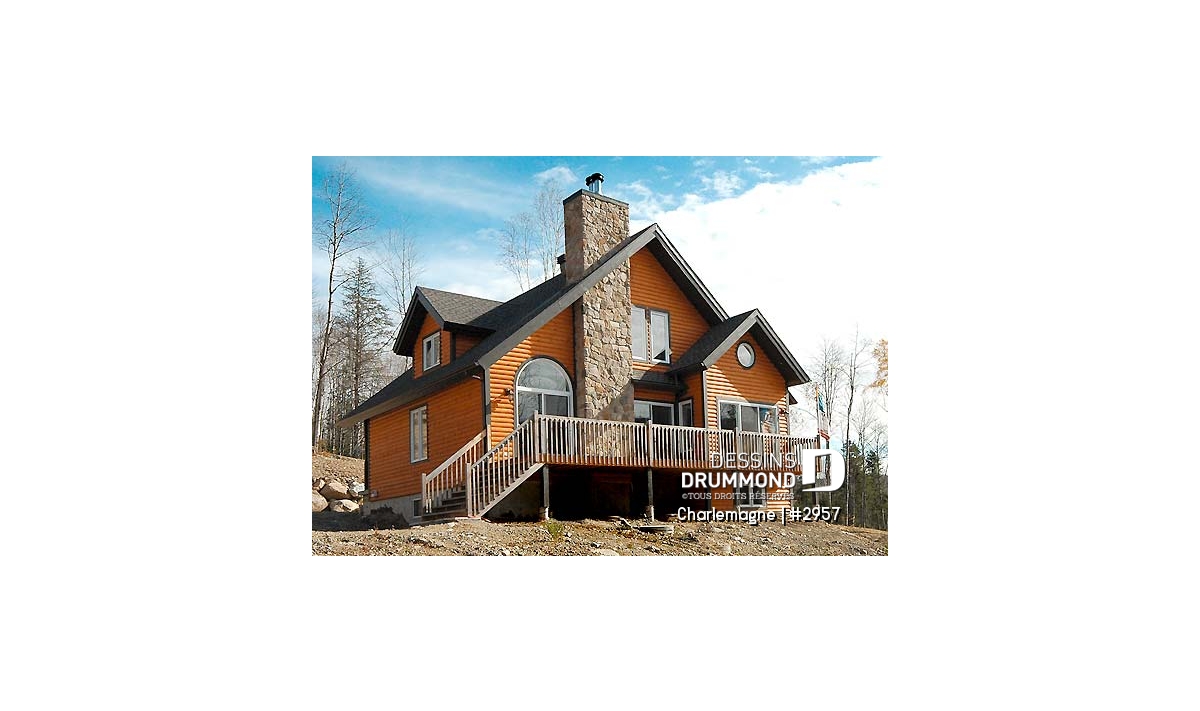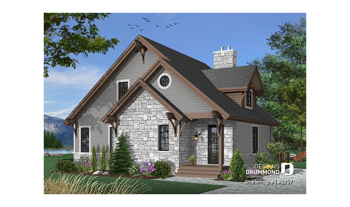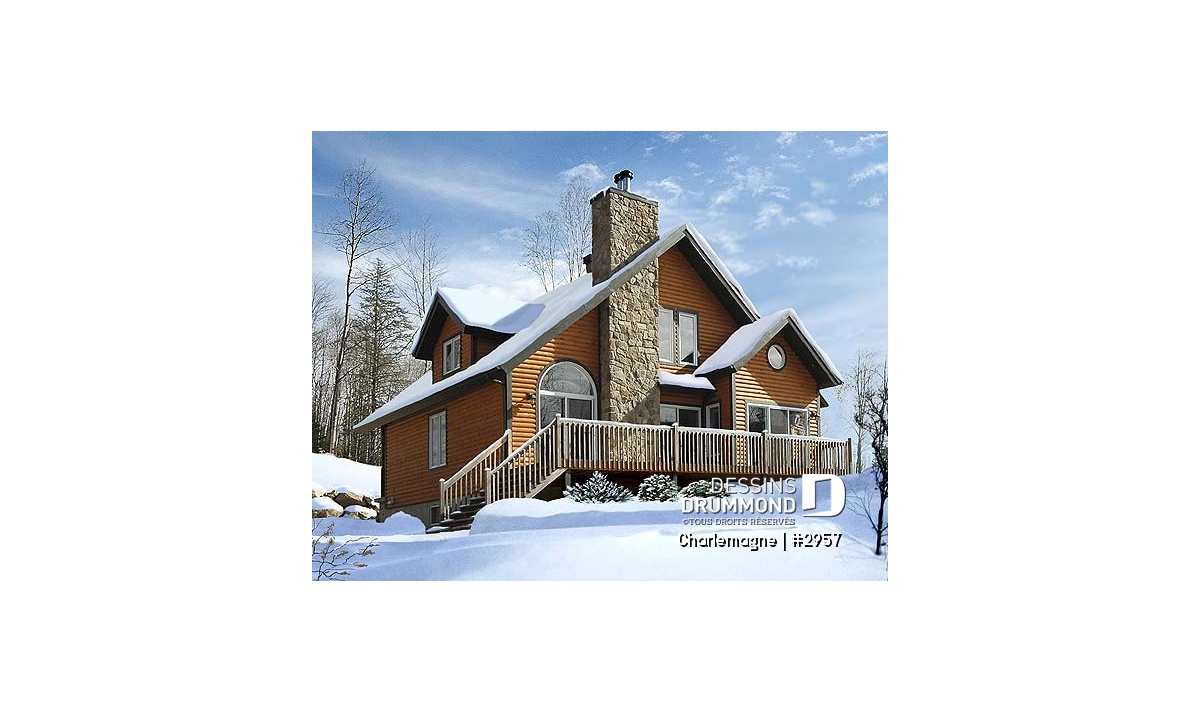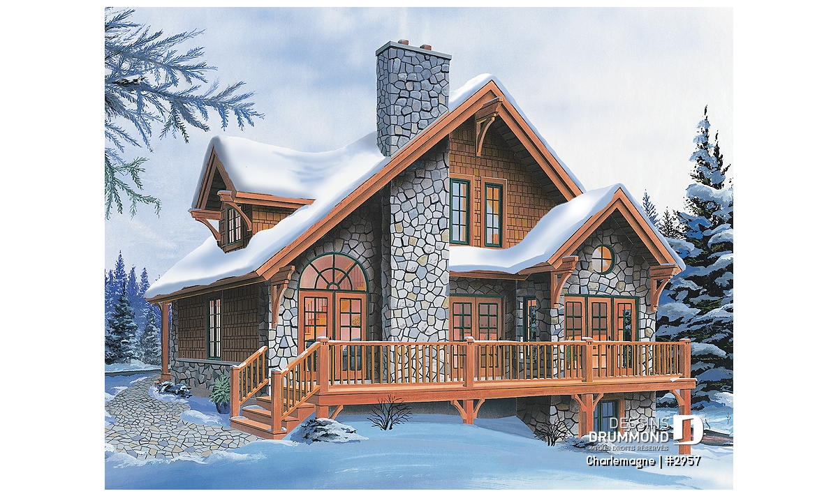 Plan de maison de style chalet de ski offrant une vue spectaculaire ou un accès près de l’eau.