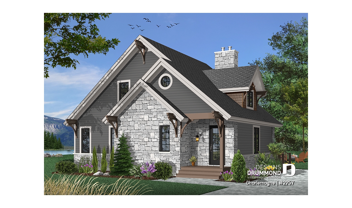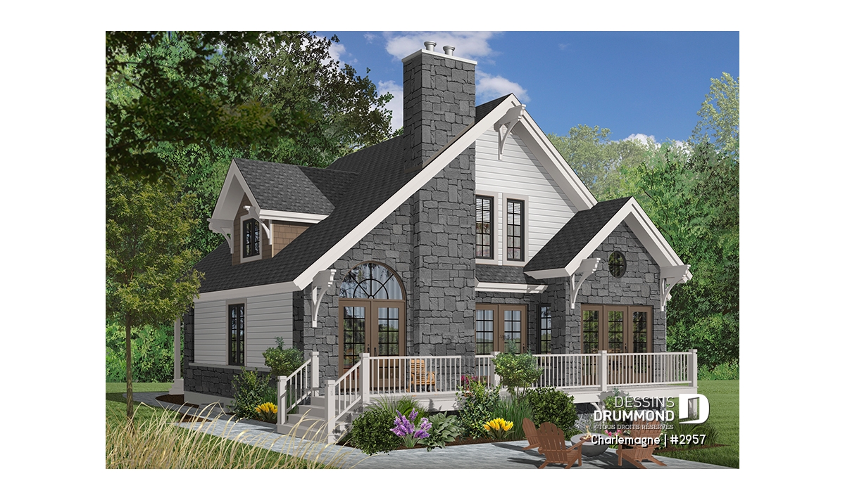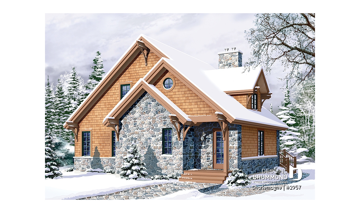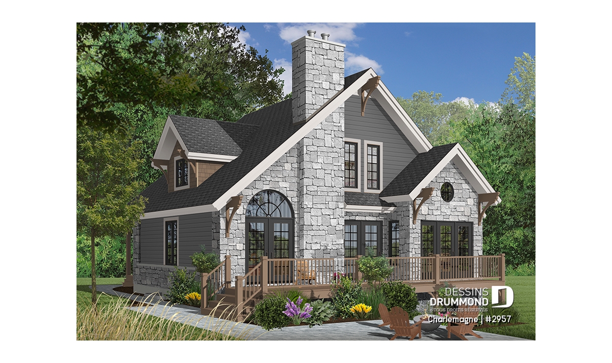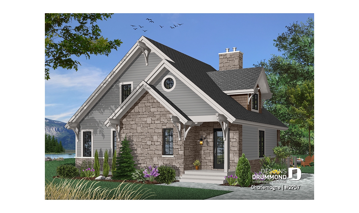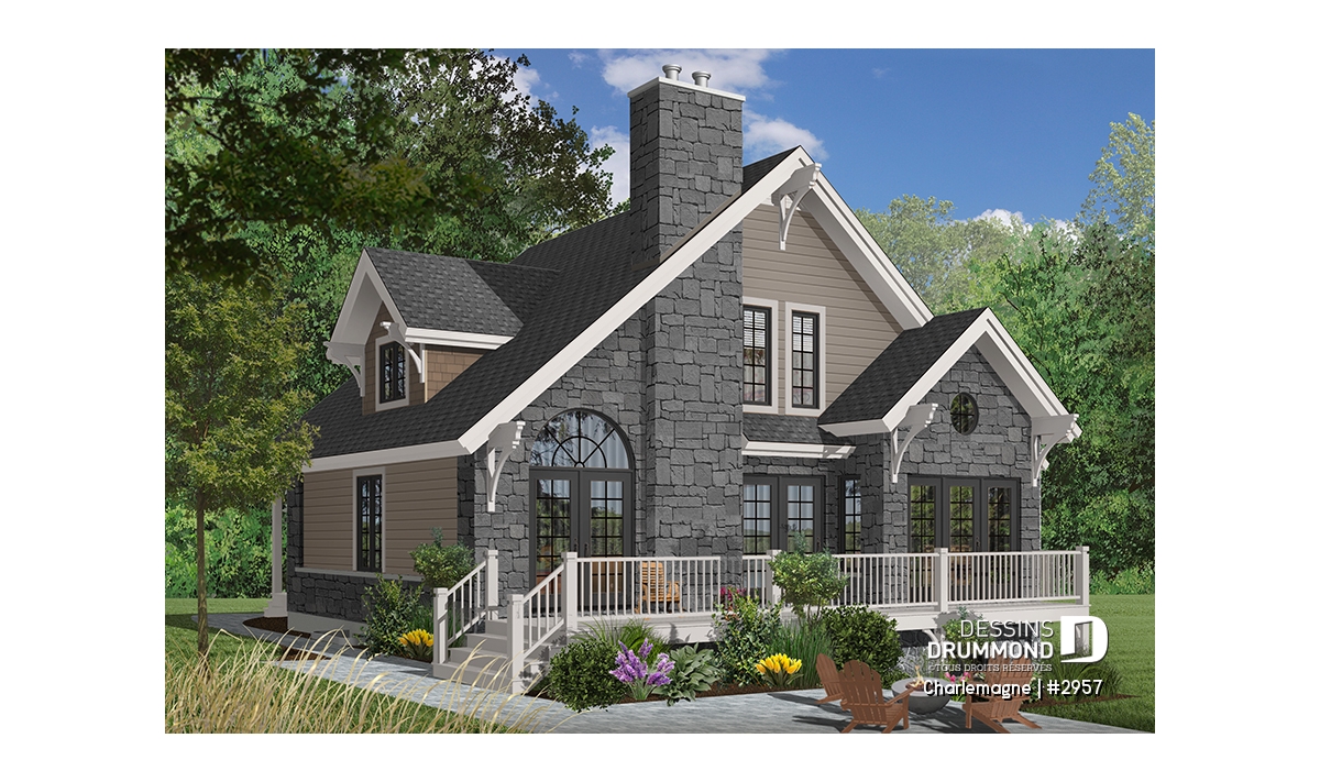 Plan de maison de style chalet de ski offrant une vue spectaculaire ou un accès près de l’eau.