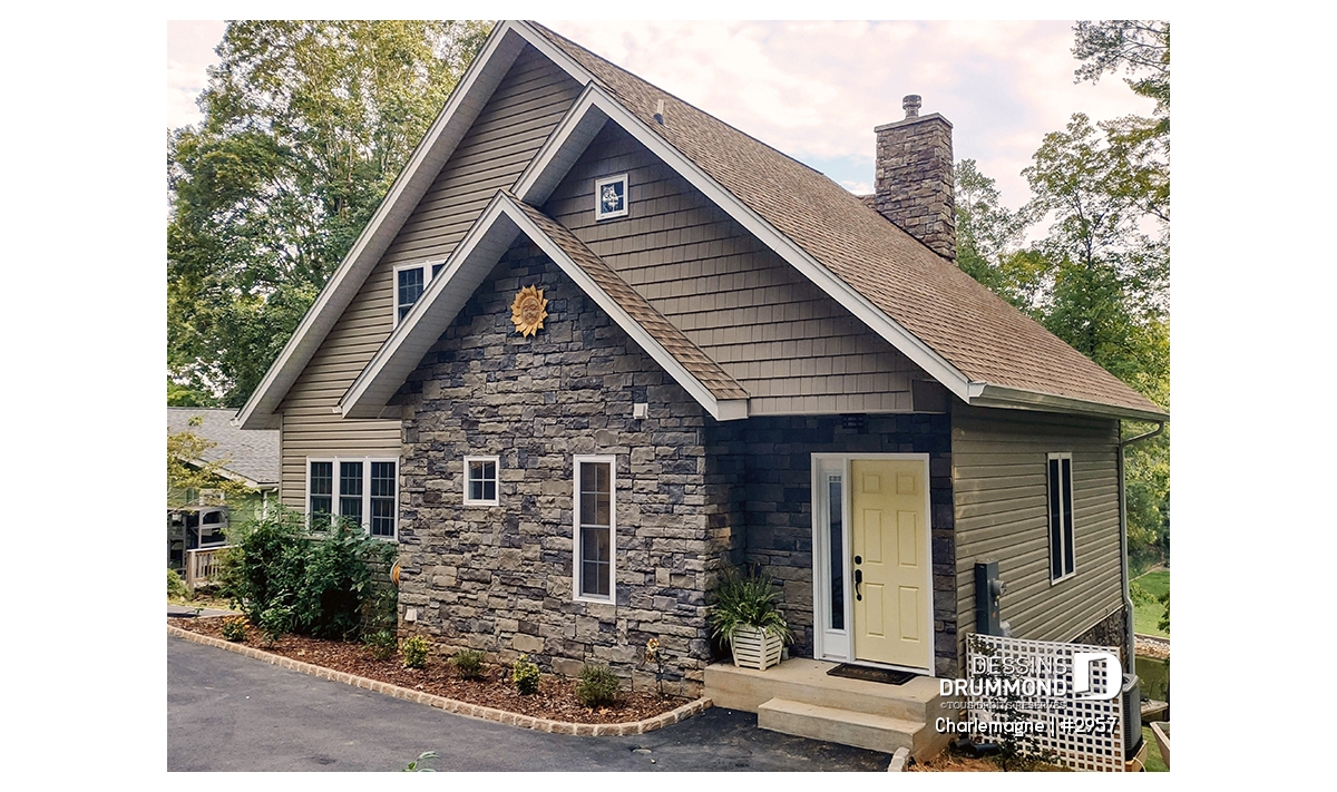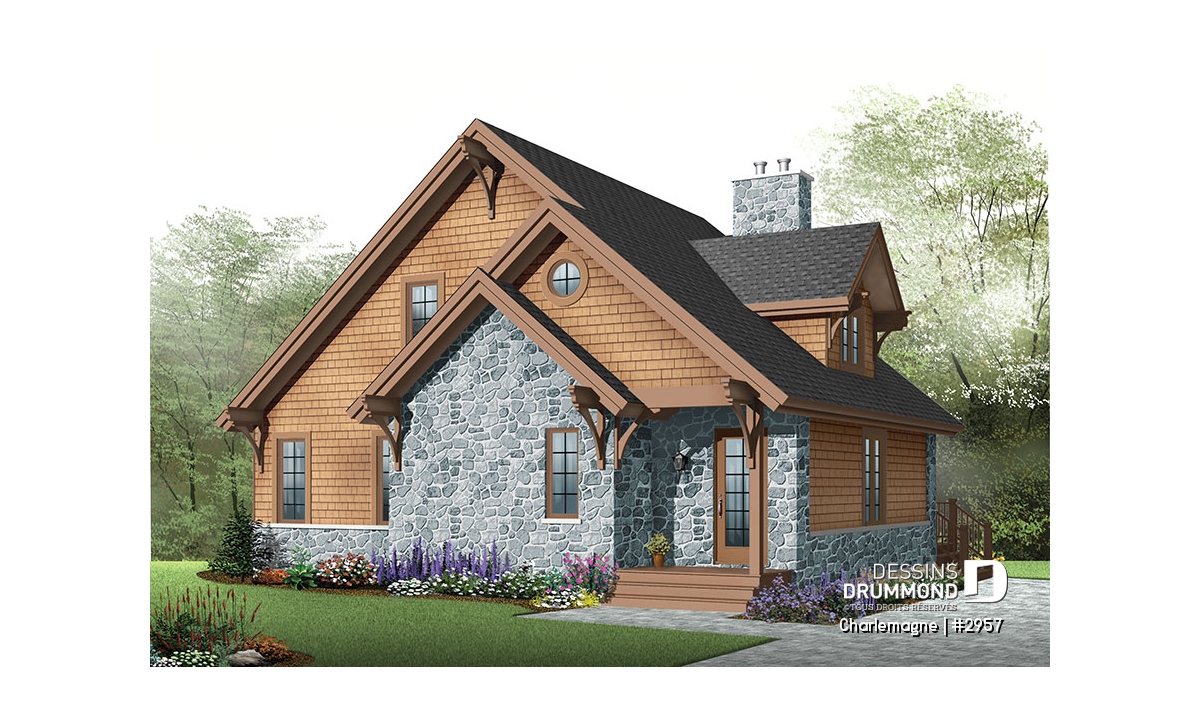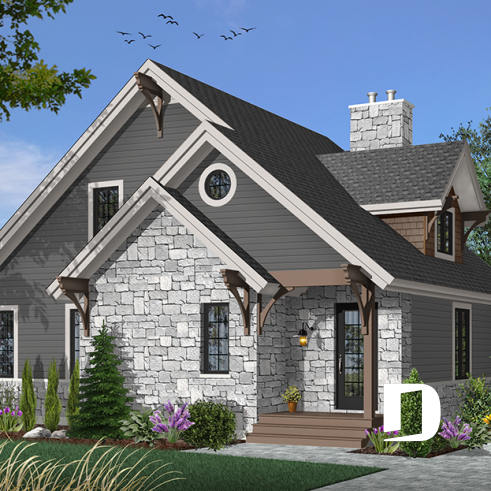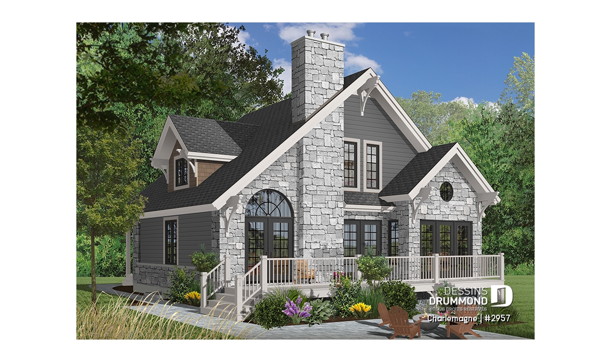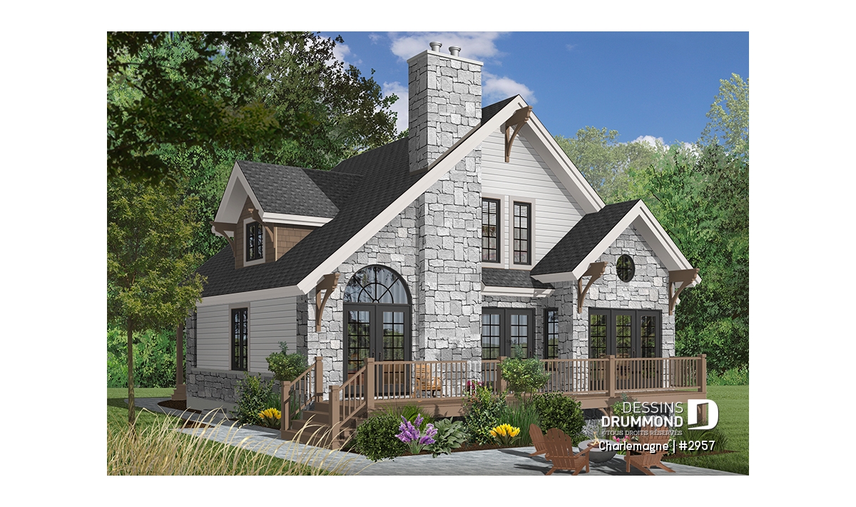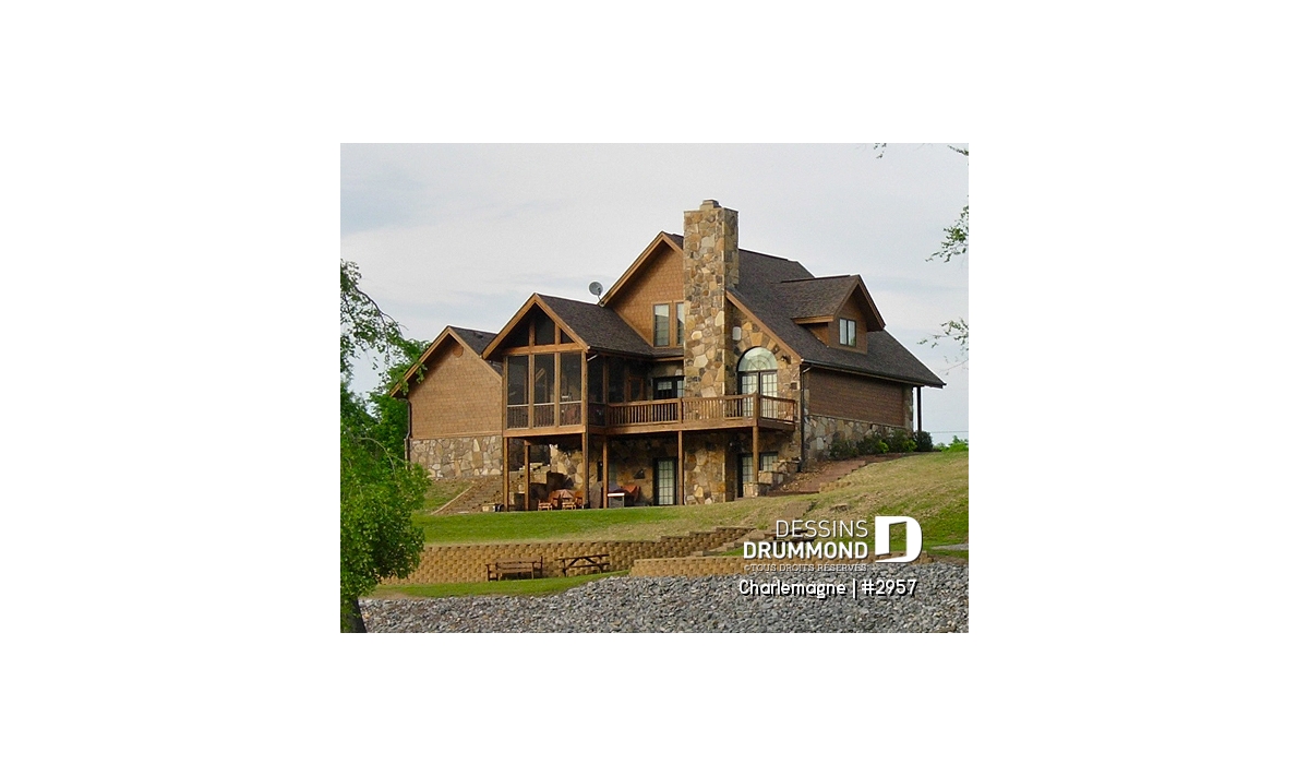 Plan de maison de style chalet de ski offrant une vue spectaculaire ou un accès près de l’eau.