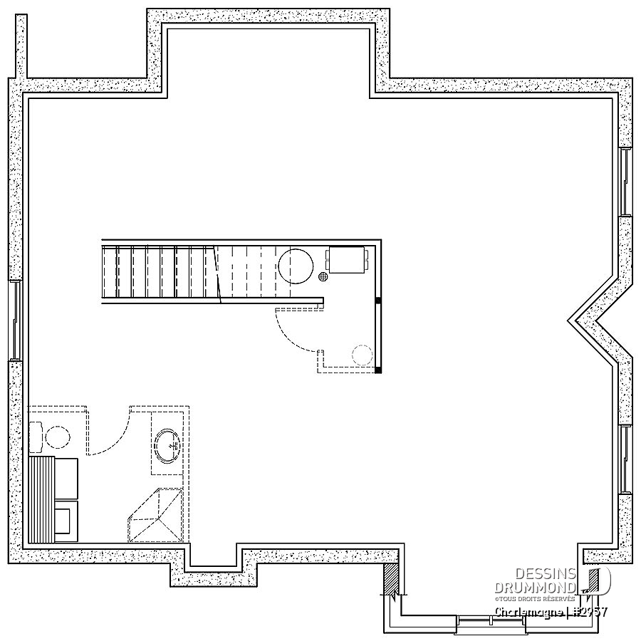 La fondation précisée à cette ligne est incluse dans le plan que vous recevrez, dans le prix du plan ainsi que dans l'estimation du coût de construction SAUF dans le cas d'un sous-sol aménagé. La finition d'un sous-sol aménagé n'est JAMAIS incluse dans notre estimation sauf si avis contraire précisé dans la description du plan et/ou dans la section élément distinctif, sur la page du plan. Un sous-sol aménageable est un sous-sol non-fini, à finir plus tard, selon vos besoins.