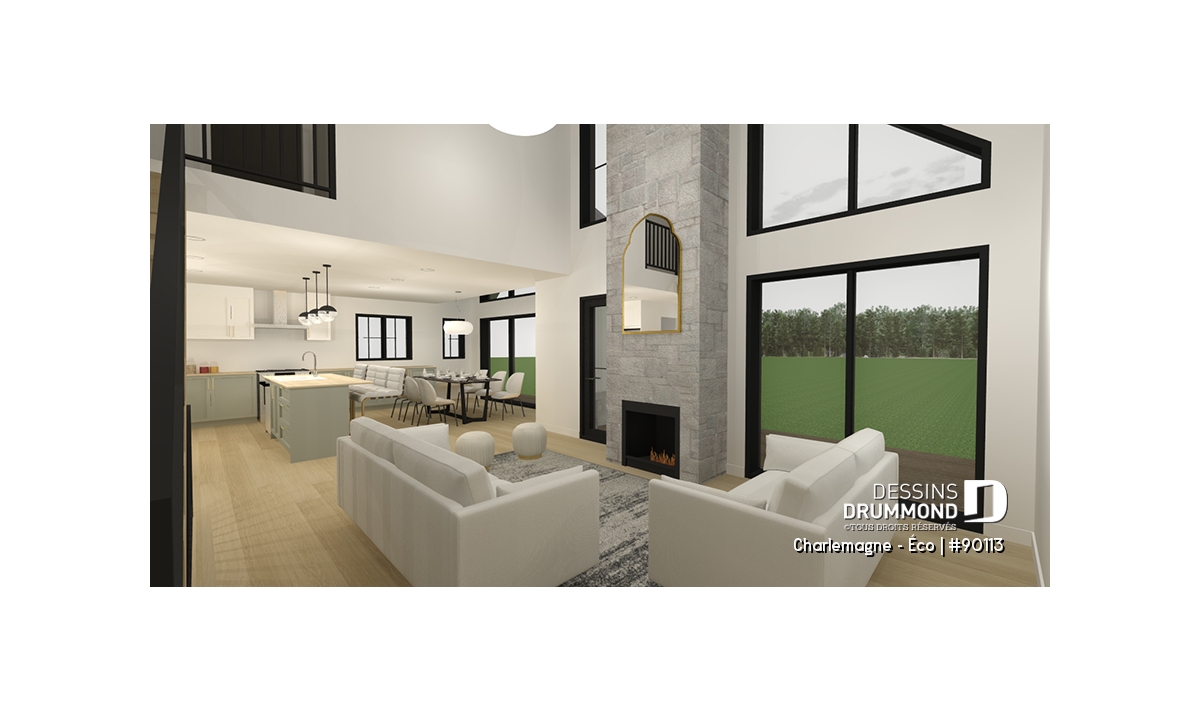 Rez-de-chaussée - Plan de chalet éco-responsable, vue panoramique, 3 à 5 chambres, cathédral, sous-sol aménagé (*optionnel $) - Charlemagne - Éco