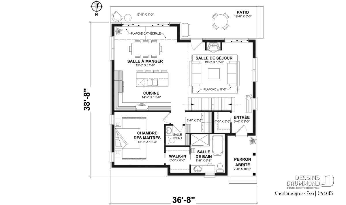 Largeur 36'8" Profondeur 38'8"