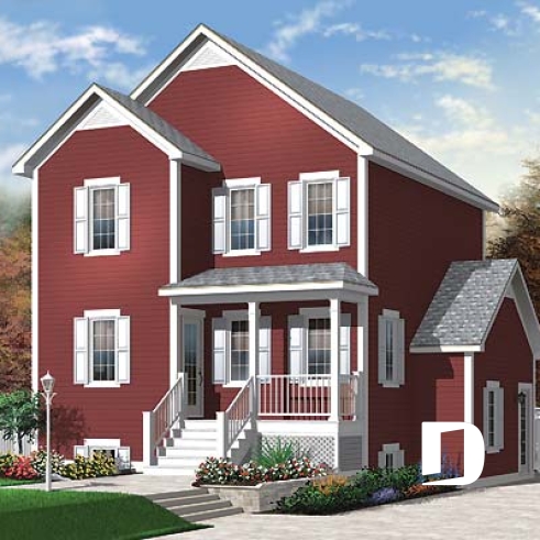 Plan de maison à étage, de style champêtre offrant un sous-sol aménagé en appartement 3 1/2.