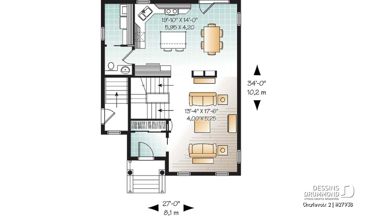 Largeur 27'0" Profondeur 34'0"