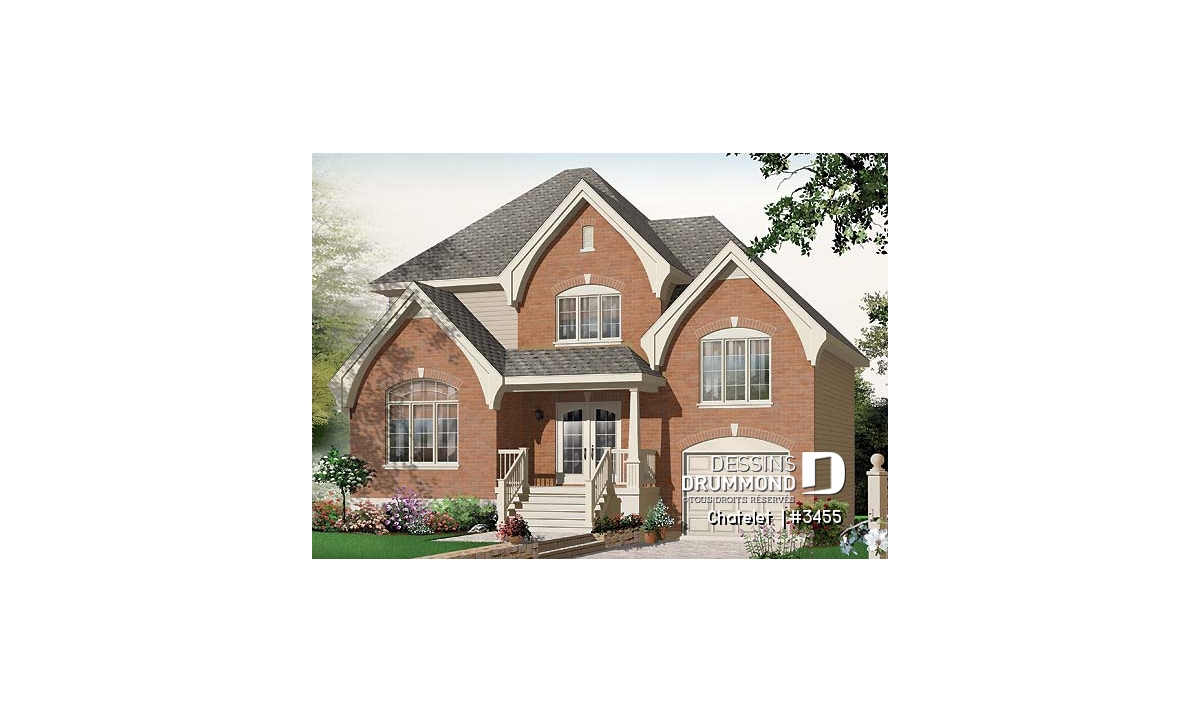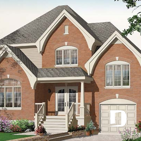Plan de maison 3 à 4 chambres avec garage, beau style classique intemporel!
