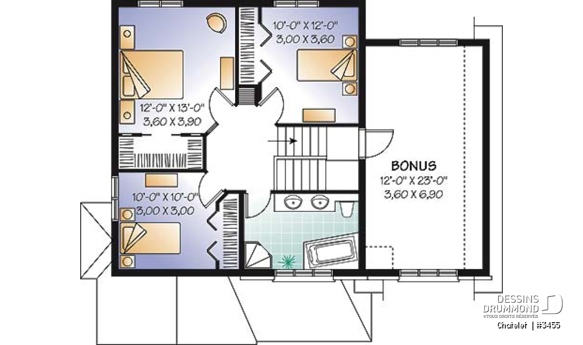 Étage - Plan de maison de style classique, 3 à 4 chambres, grande entrée, garage avec espace boni - Chatelet