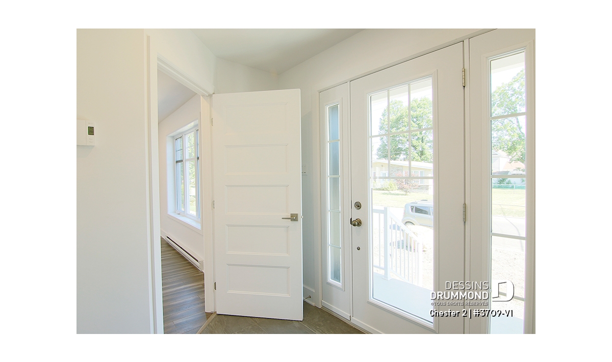 Balcon avant abrité, garde-robe et vestibule de beau format à l'entrée principale.