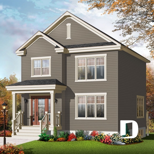 Plan de maison idéale pour terrain étroit, 2 étages, 3 chambres, petit bar à café, grande s.bain familiale