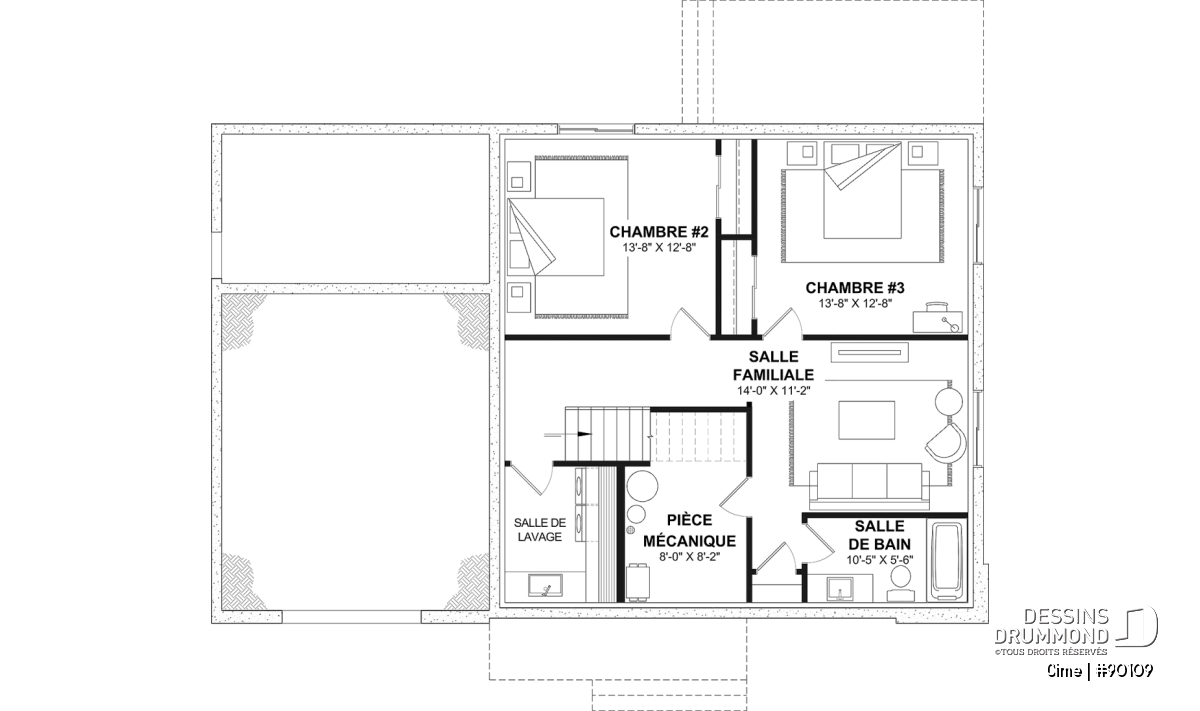 *Si vous souhaitez acheter le plan du sous-sol aménagé, veuillez sélectionner cette option dans le panier d'achat, dans la section "Sélectionner votre fondation". Si vous ne sélectionnez pas cette option, vous recevrez le sous-sol non fini, sans frais additionnel.