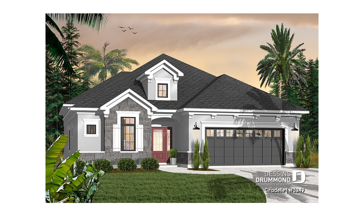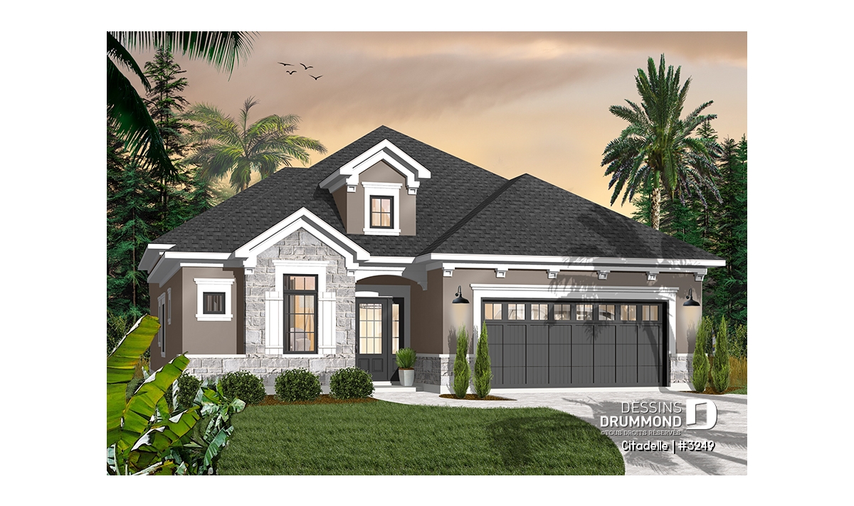 Plafond à plus de 12 pieds pour le secteur activités, avec foyer, et à plus de 9 pieds ailleurs au rez-de-chaussée. Quatre chambres prévues.