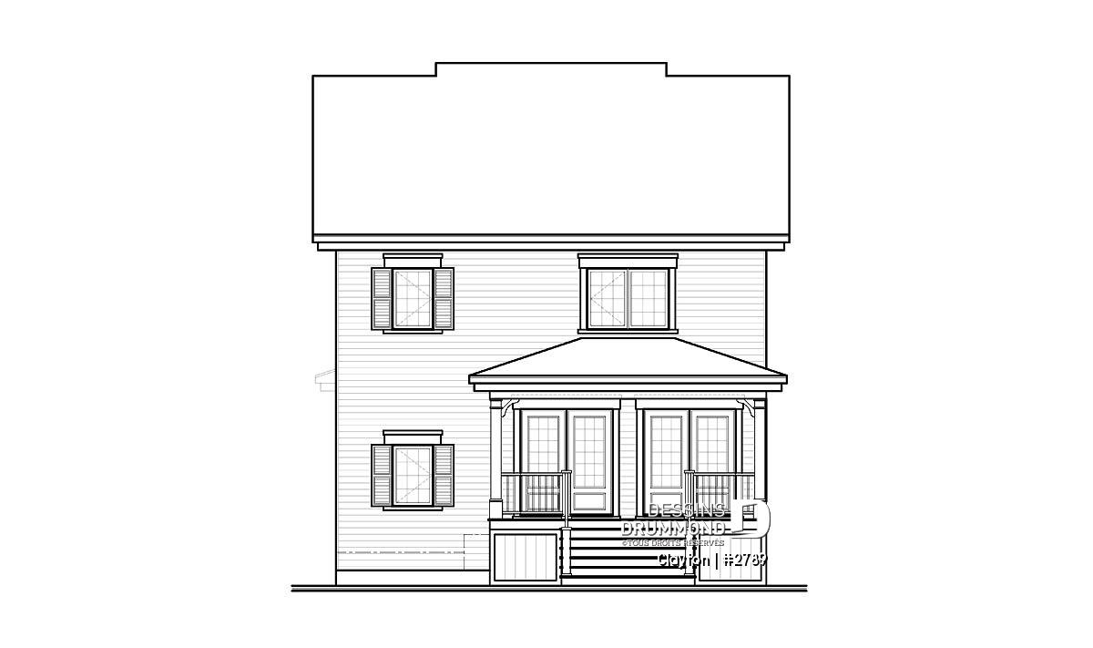 Vue avant - MODÈLE DE BASE - Plan de Modèle champêtre 2 étages avec 3 chambres et rez-de-chaussée à air ouverte - Clayton