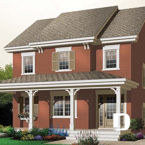 Plan de Modèle champêtre 2 étages avec 3 chambres et rez-de-chaussée à air ouverte