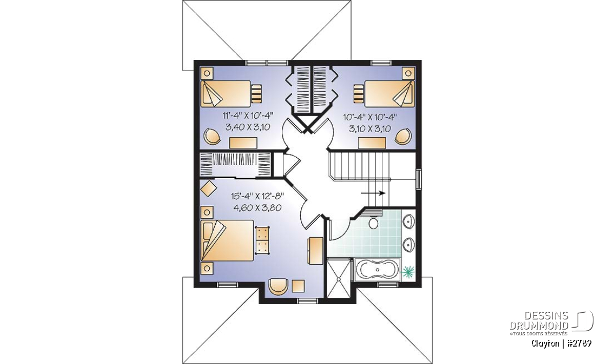Étage - Plan de Modèle champêtre 2 étages avec 3 chambres et rez-de-chaussée à air ouverte - Clayton