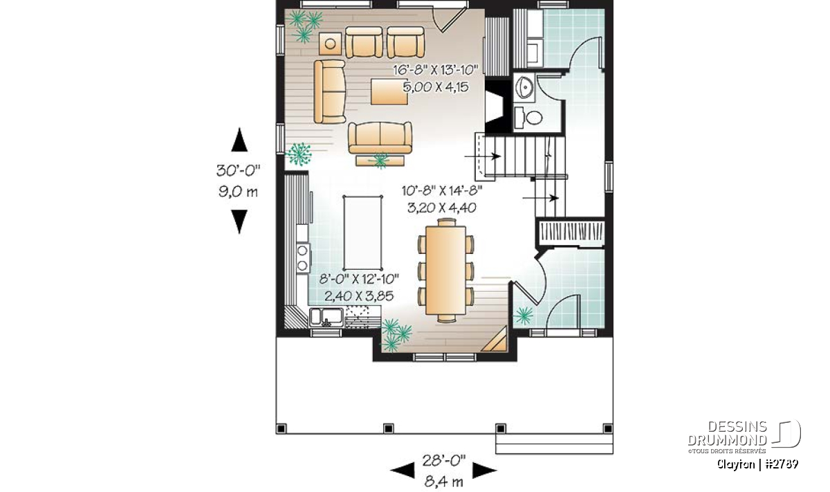 S’il est un plan qui plaira assurément, c’est bien celui-ci avec des lignes sobres, une toiture plutôt simplifiée, une fenestration abondante et bien équilibrée ainsi qu’une galerie avant plus qu’accrocheuse. De plus, l’originalité, tout comme la logeabilité dont on fait part sur ce modèle, proviennent de l’aménagement intérieur. Constatons-le sans plus tarder.