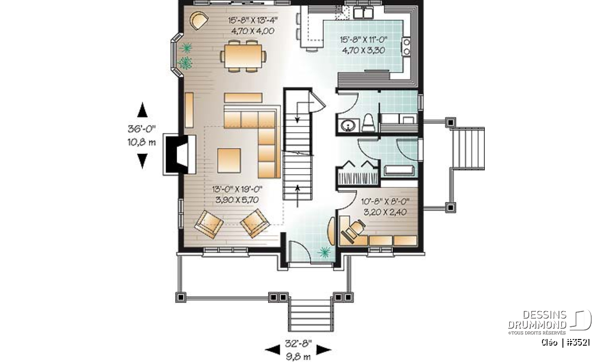 Conçu d’abord et avant tout pour un particulier à la recherche d’une maison genre château original avec deux chambres à l’étage, ce plan fut racheté à son propriétaire afin d’en faire un plan standard désormais possible à se procurer pour tout propriétaire intéressé par celui-ci.