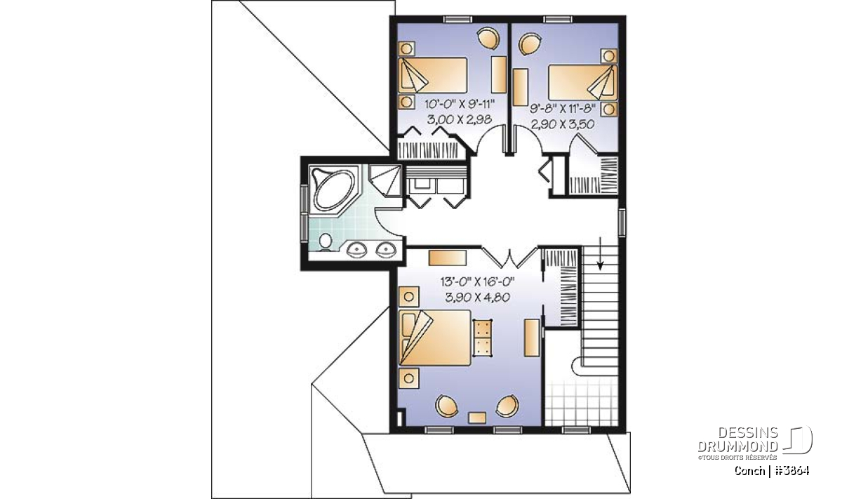 À l’étage, davantage québécois, on retrouve trois chambres avec de bons rangements, un coin laveuse-sécheuse et une salle de bain avec bain et douche en coin.