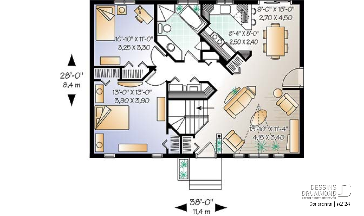 Largeur 38'0" Profondeur 28'0"