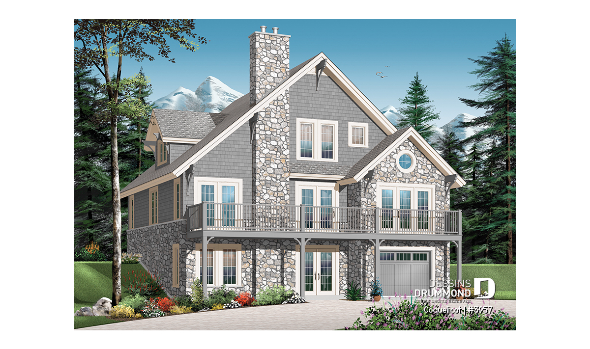 Plan de maison de style chalet de ski ou près d’un plan d’eau.