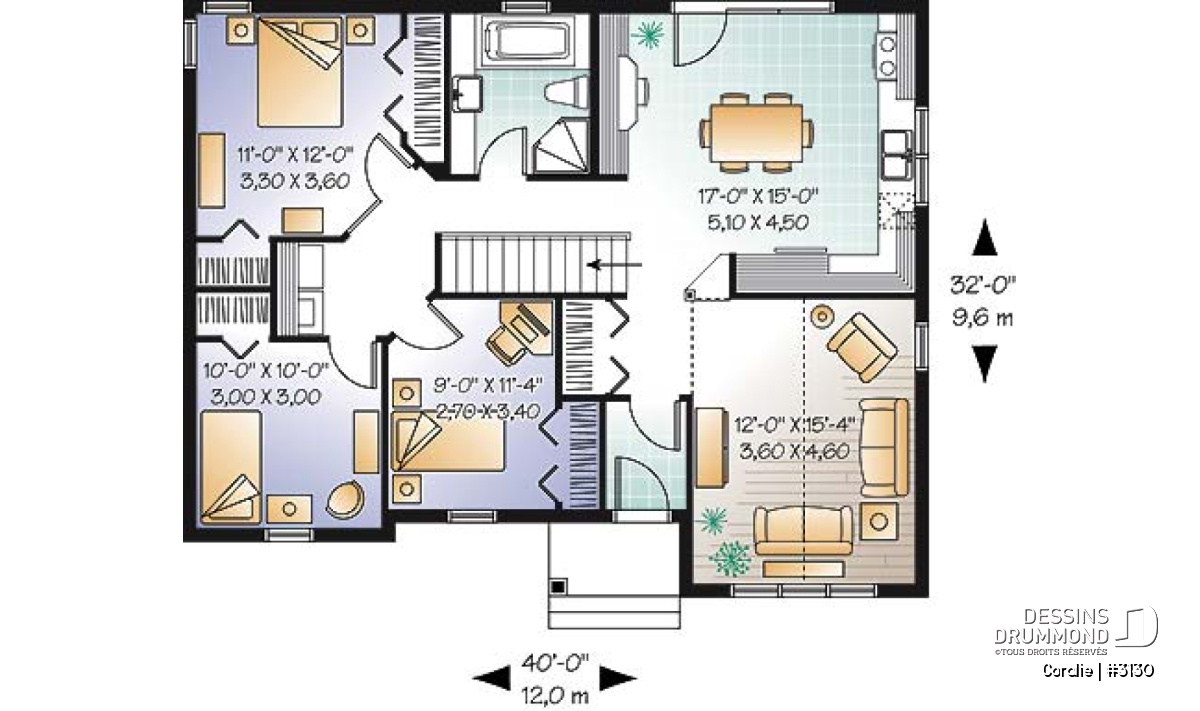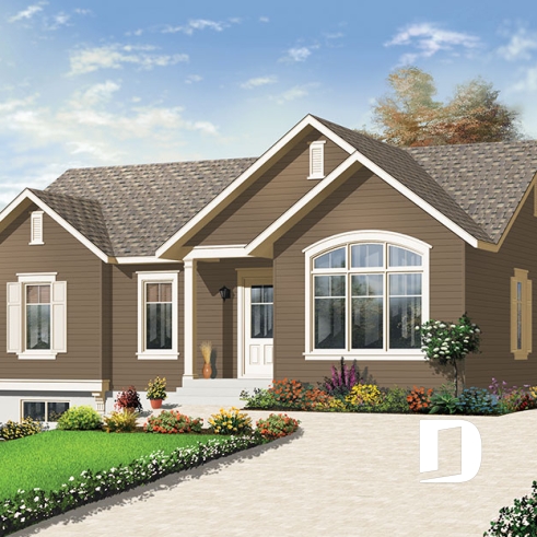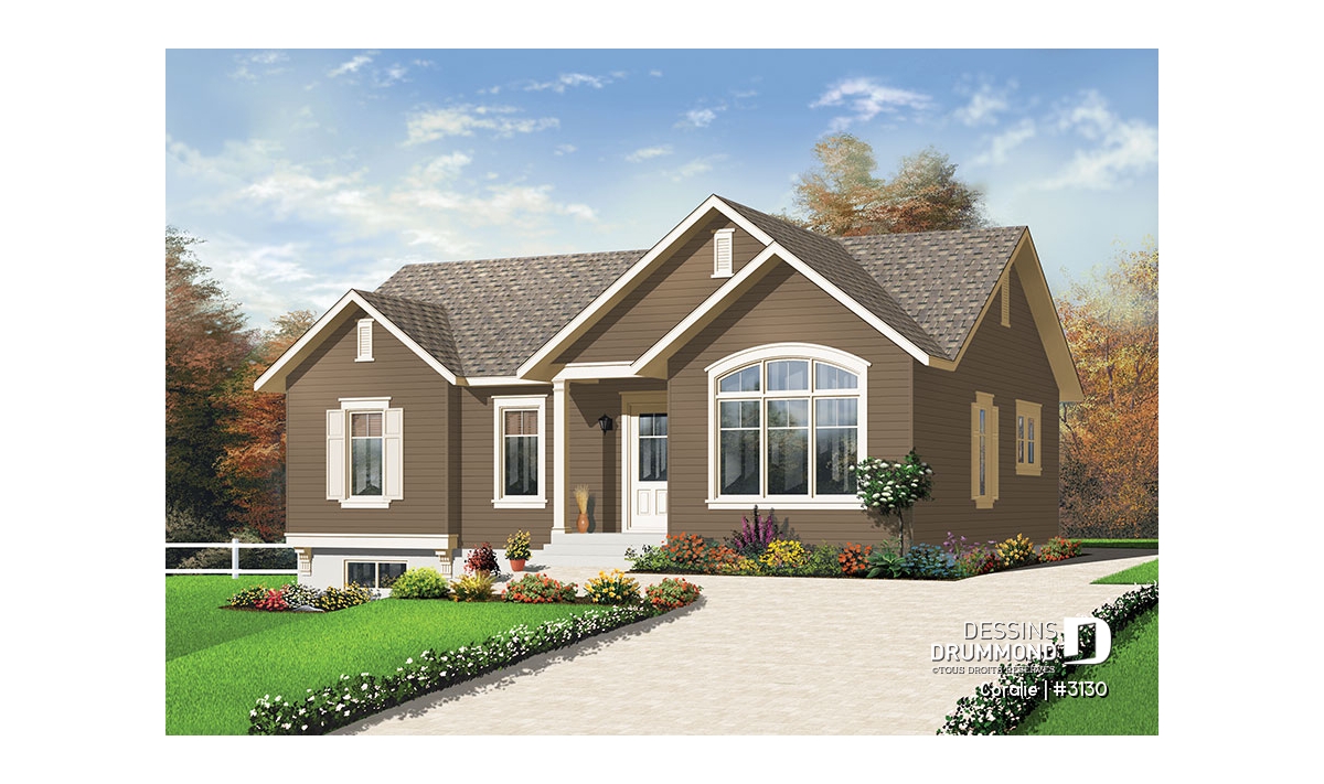 À l’instar du modèle 3131, celui-ci propose aussi un extérieur aux lignes attrayantes par le biais d’un équilibre des pignons et d’un bon dosage d’ouvertures dont cette belle fenêtre arquée qui, comme on pourra le constater lors de notre visite, éclaire abondamment la salle de séjour.