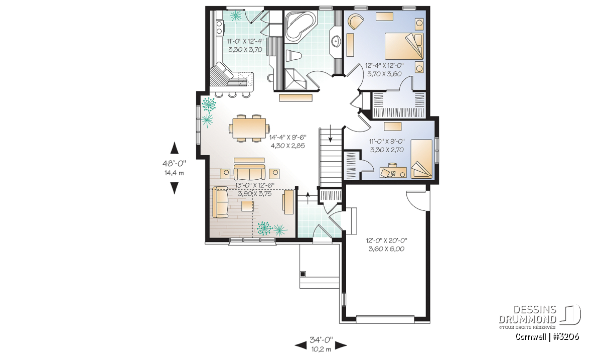 De plus en plus recherché par des propriétaires désireux de se loger sur un même plancher, pour qui un garage est un incontournable et parce qu’ils sont contraints d’aménager leur maison sur un terrain étroit ( fréquemment le cas aujourd’hui ), ce plain-pied devient une solution gagnante.
