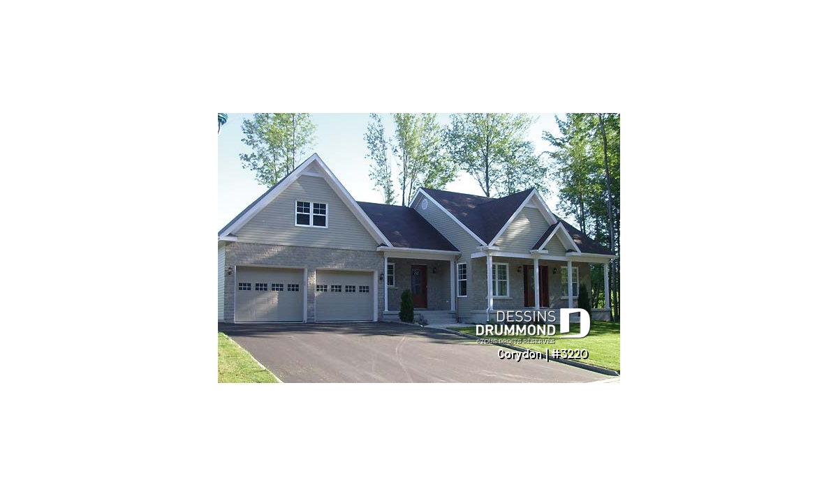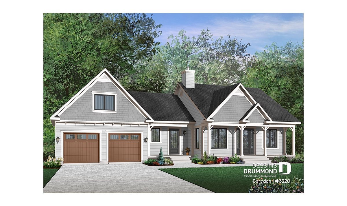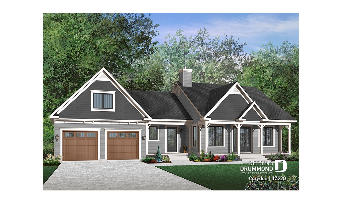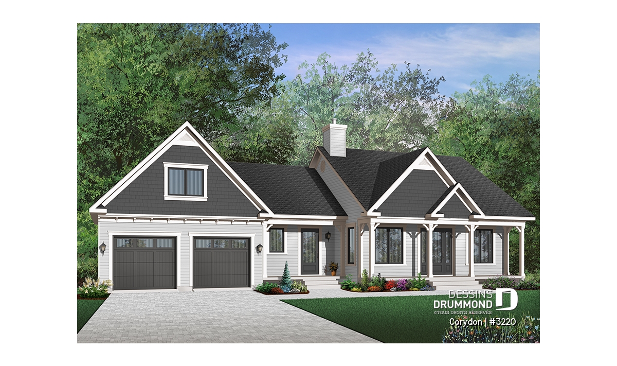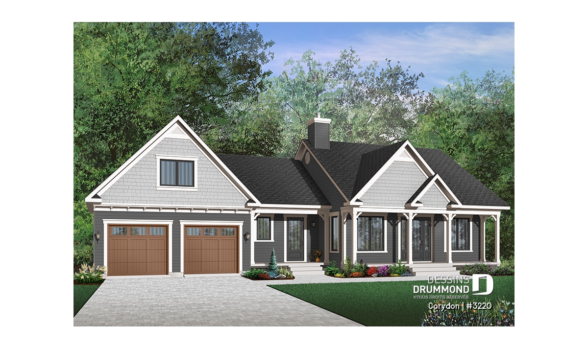 Très prisé des québécois sous sa forme initiale, soit le modèle 1478 que vous êtes en mesure de voir sur le site internet dessinsdrummond.com, ce plain-pied s’avère populaire dès son arrivée sur le marché. Est-ce dû à son charme extérieur indéniable, avec deux galeries en façade et un bon équilibre des pignons, ou bien à son garage double tant recherché et proposant à la fois un espace rangement à l’étage et un accès au sous-sol.