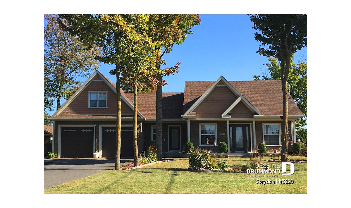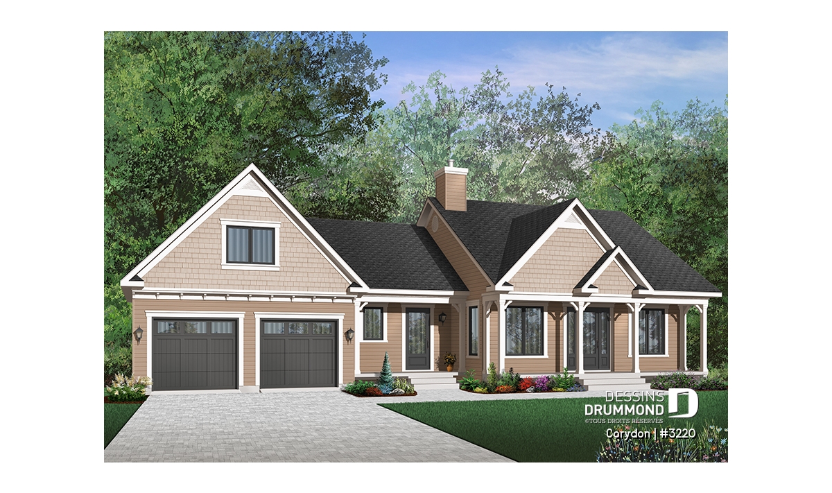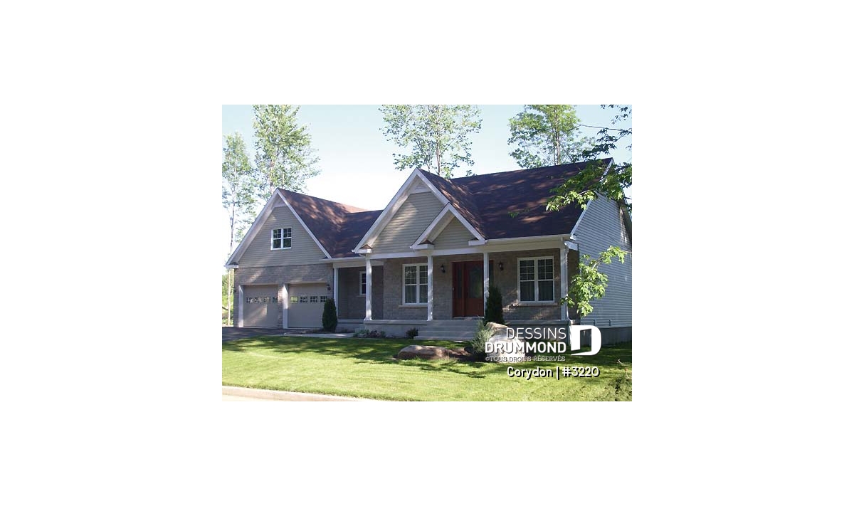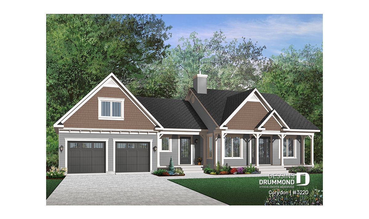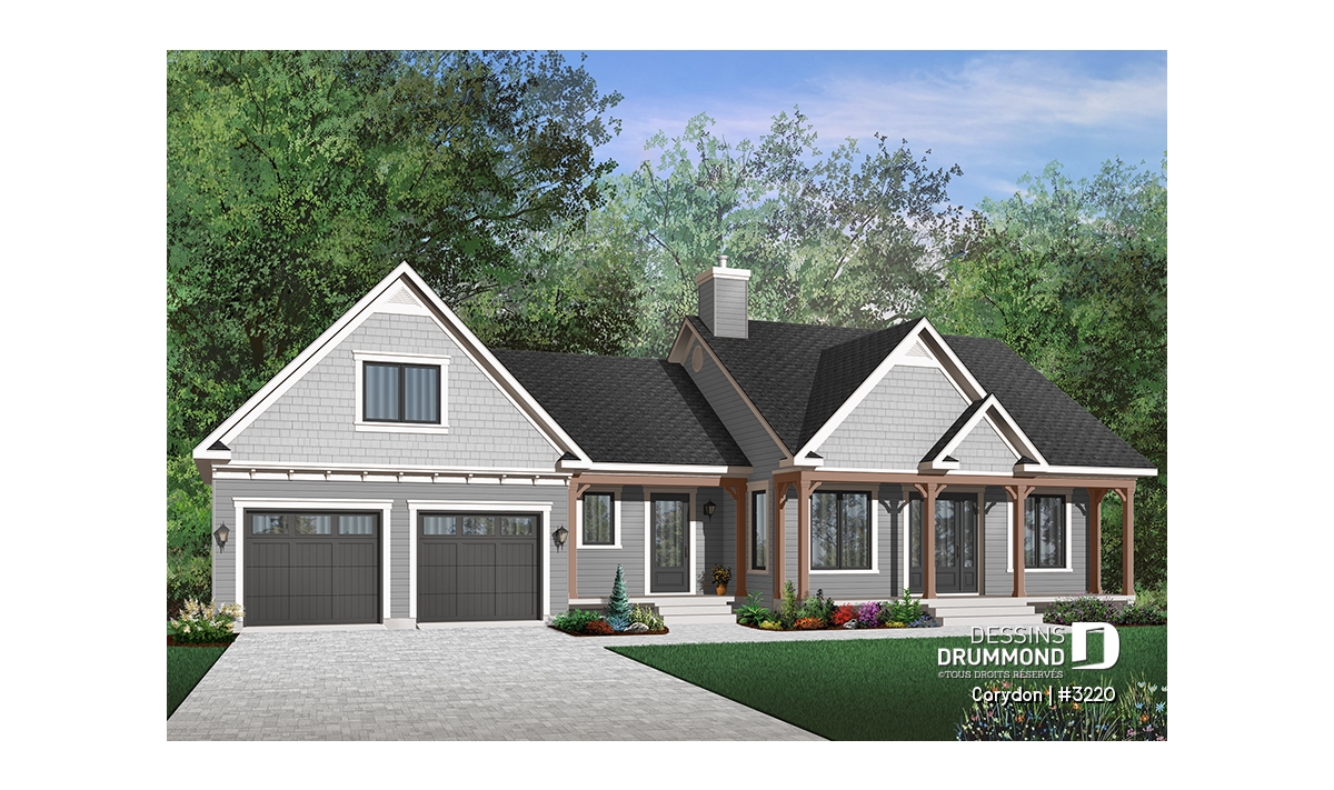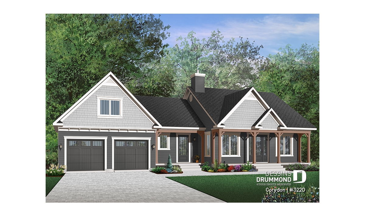 Très prisé des québécois sous sa forme initiale, soit le modèle 1478 que vous êtes en mesure de voir sur le site internet dessinsdrummond.com, ce plain-pied s’avère populaire dès son arrivée sur le marché. Est-ce dû à son charme extérieur indéniable, avec deux galeries en façade et un bon équilibre des pignons, ou bien à son garage double tant recherché et proposant à la fois un espace rangement à l’étage et un accès au sous-sol.