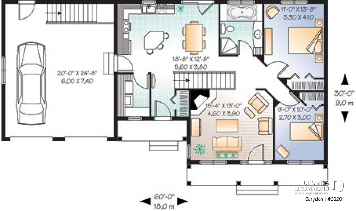 | Largeur | 60'0" | Profondeur | 30'0" |
