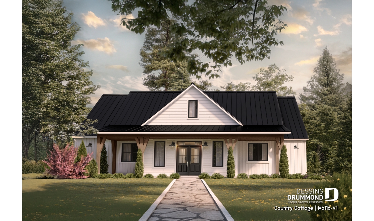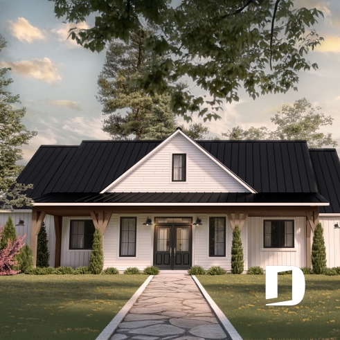 Plan de maison de style Farmhouse, alliant élégance classique et confort moderne.