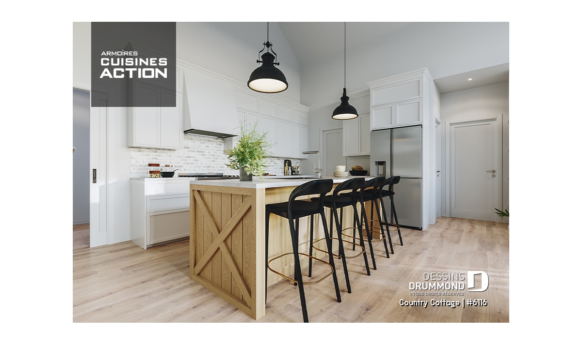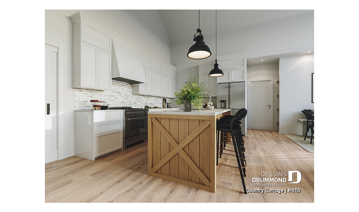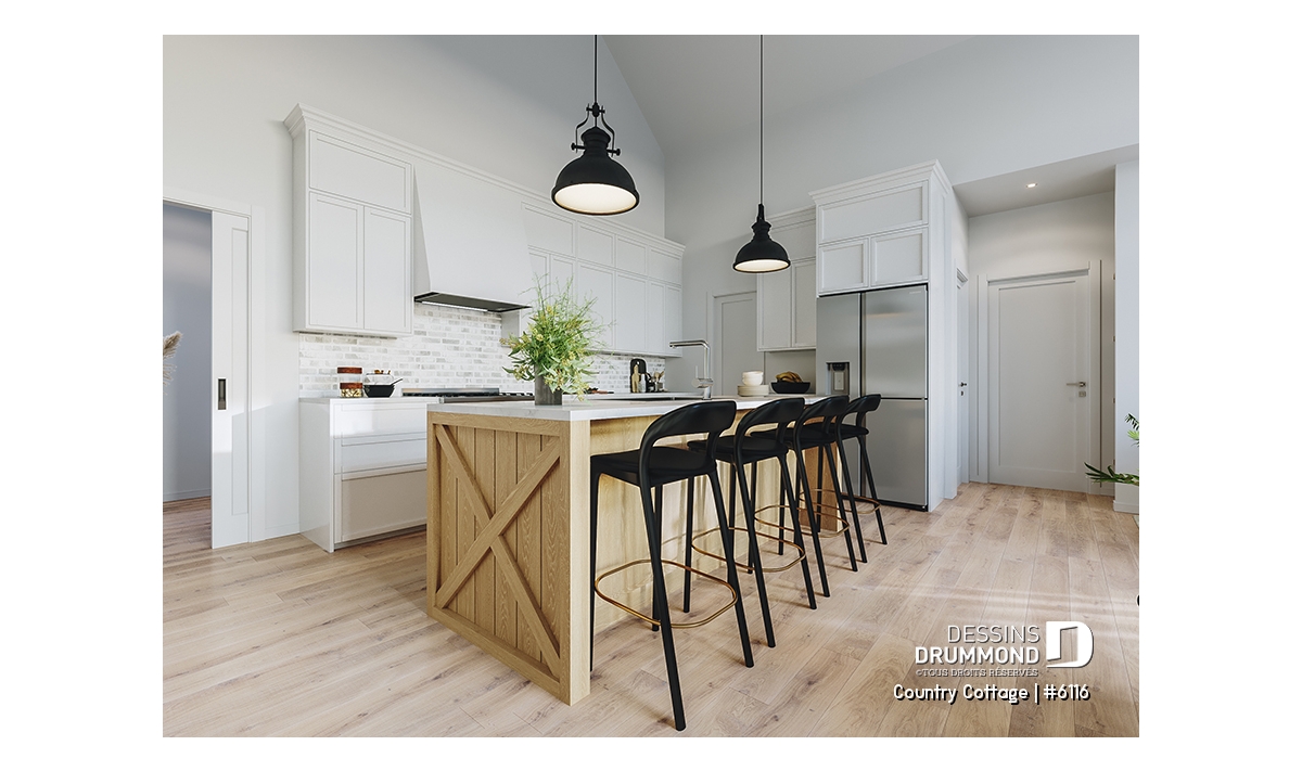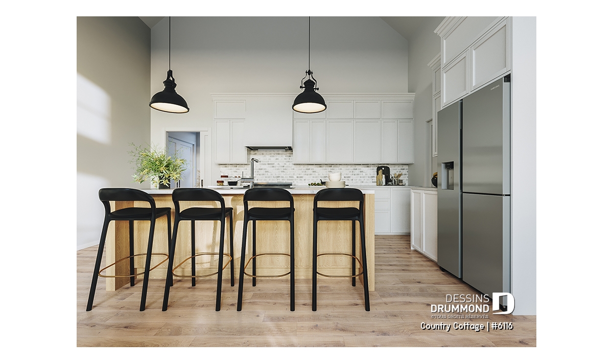 Abri moustiquaire, Aire ouverte, Banquette, Comptoir-lunch, Foyer, Galerie 2-3 côtés, Garde-manger, Ilôt, Plafond cathédrale, Plafond à plus de 8', Bain et douche séparés, Lavabo double, Salle de lavage au rez-de-chaussée