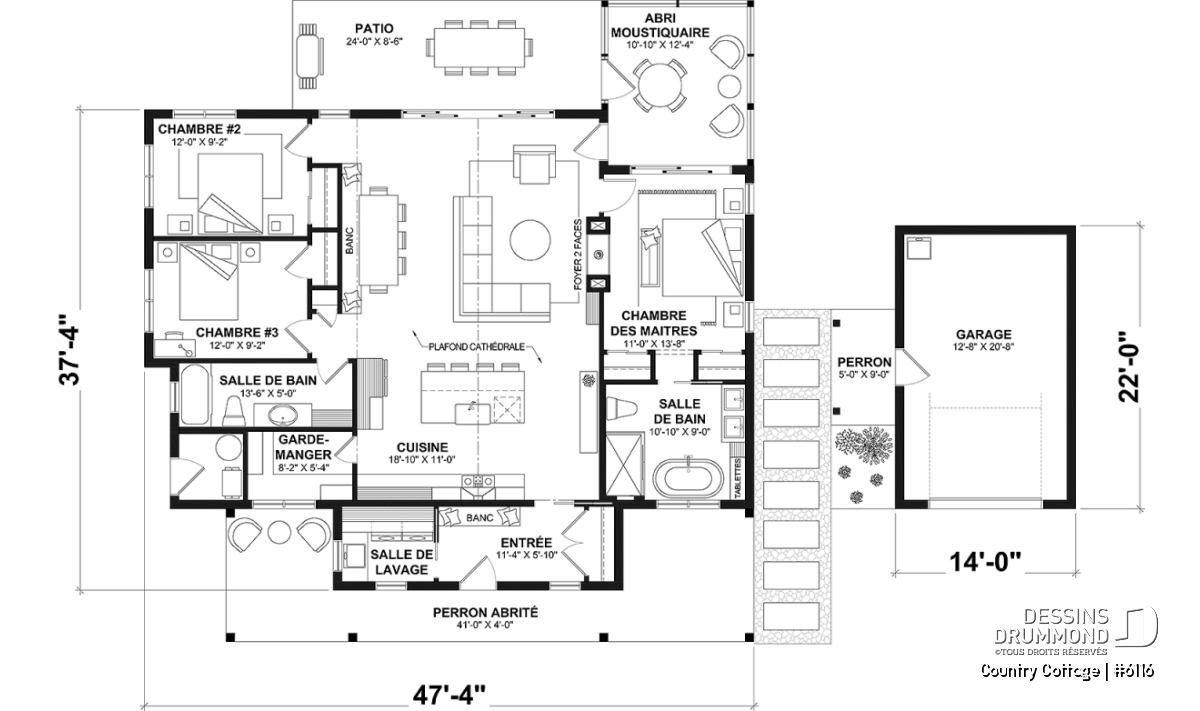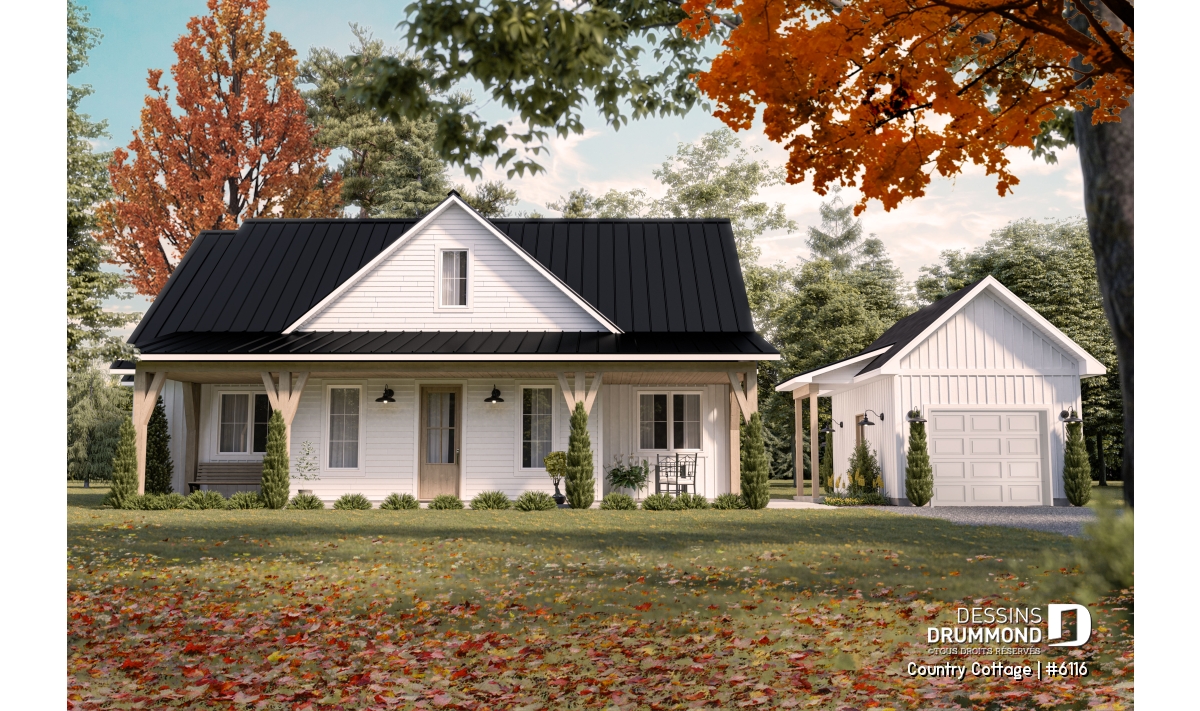 Le garage (simple) détaché est inclus dans le plan que vous recevrez. Il s’agit du modèle SIMSBURY (#6988) de notre collection. Toutefois, le coût approximatif de construction du garage n’est pas inclus dans l’estimation du plan 6116. Pour connaître le coût approximatif de construction du garage, veuillez consulter le plan #6988.