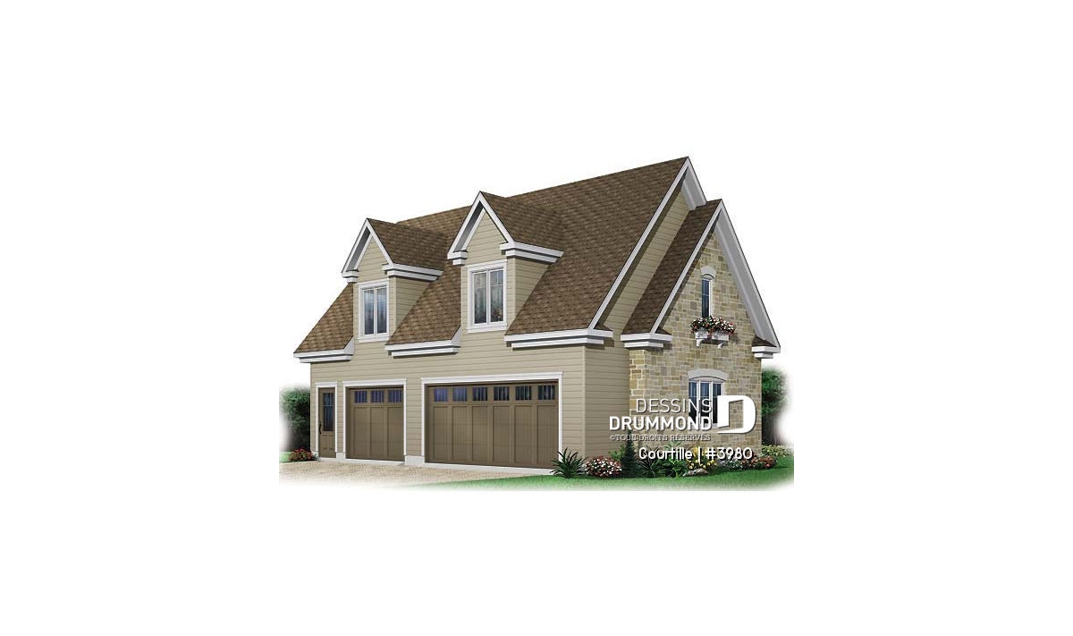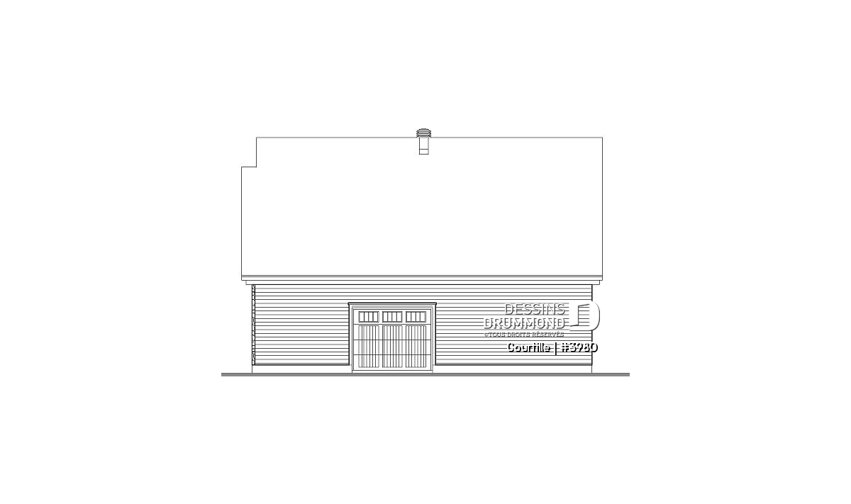 Vue avant - MODÈLE DE BASE - Plan de grand garage avec espace boni aménageable pour 3 voitures - Courtille
