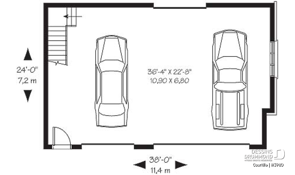 Plan de grand garage avec espace boni aménageable pour 3 voitures