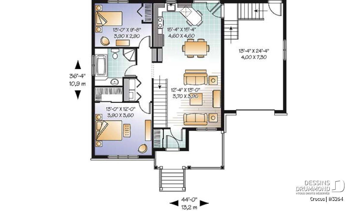 | Largeur | 44'0" | Profondeur | 36'4" |