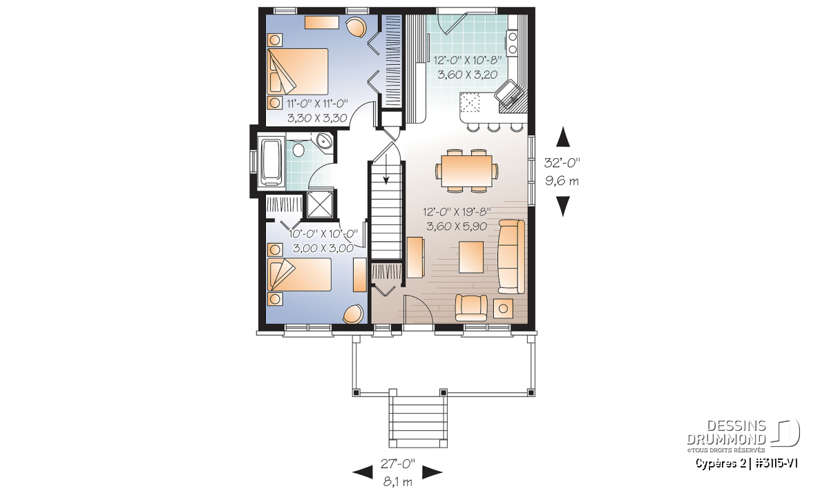 Largeur 27'0" Profondeur 32'0"