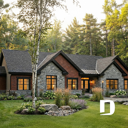 Le modèle Dambroise 2 (#3224-V1) est un magnifique plan de maison plain-pied de style moderne rustique, conçu pour offrir confort, luminosité et grande polyvalence, avec 2 016 pi² habitables au rez-de-chaussée ainsi qu’un sous-sol de même superficie prêt à être aménagé selon vos besoins.