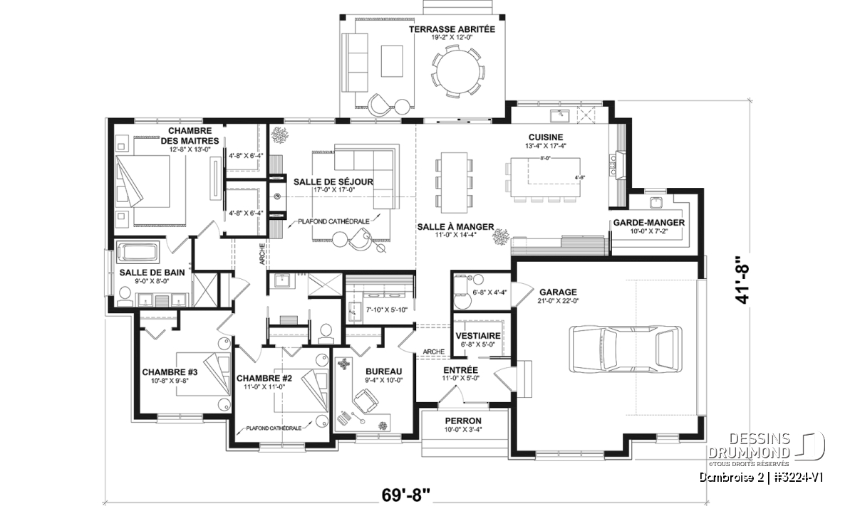 À l’arrière, une grande terrasse de 19' x 12' prolonge les espaces de vie vers l’extérieur, parfaite pour les repas et les moments de détente. Le Dambroise 2 (#3224-V1) se distingue par son équilibre parfait entre design, fonctionnalité et évolutivité, offrant une maison adaptée à vos besoins d’aujourd’hui comme à ceux de demain.