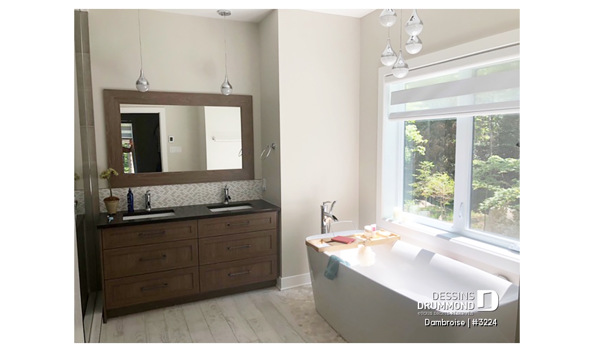 Plafond cathédrale, Salle de lavage au rez-de-chaussée, Garage latéral, Bureau / Salle étude, Comptoir-lunch, Ilôt, Vue paronamique, Aire ouverte, Plafond à plus de 8', Terrasse abritée, Suite des maîtres au rdc, Bain et douche séparés, Lavabo double