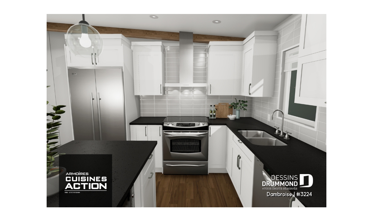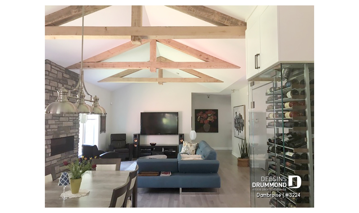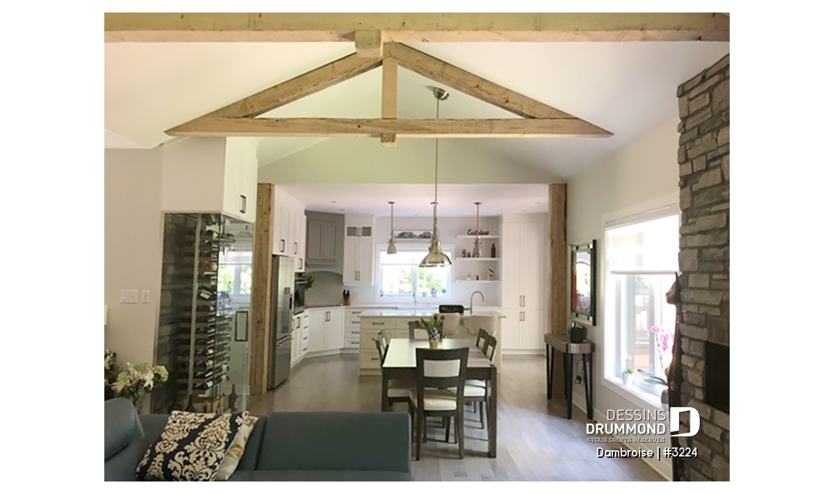 Plafond à 9 pi sur tout le rez-de-chaussée et cathédrale un versant pour la salle à manger et la salle de séjour avec pointe à plus de 14 pieds.