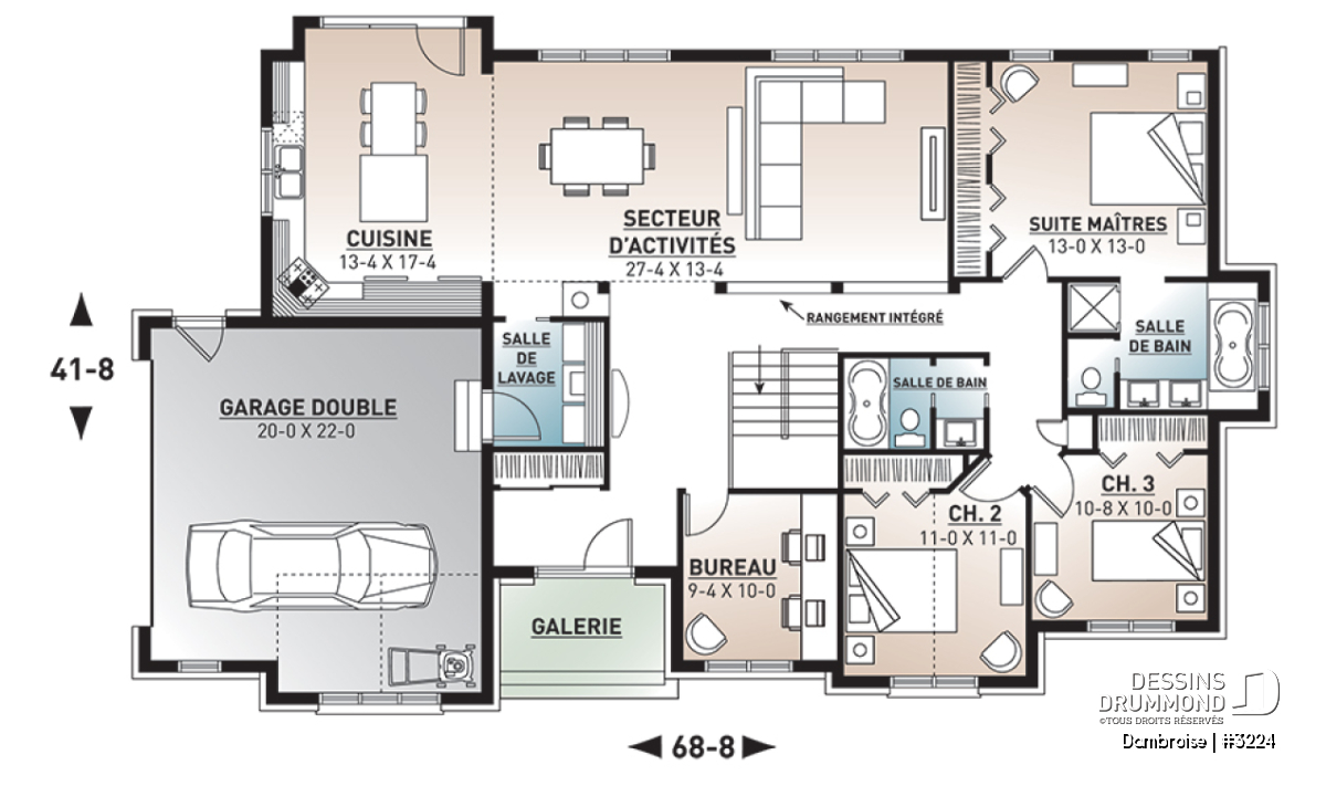Plan de maison de style ranch américain.