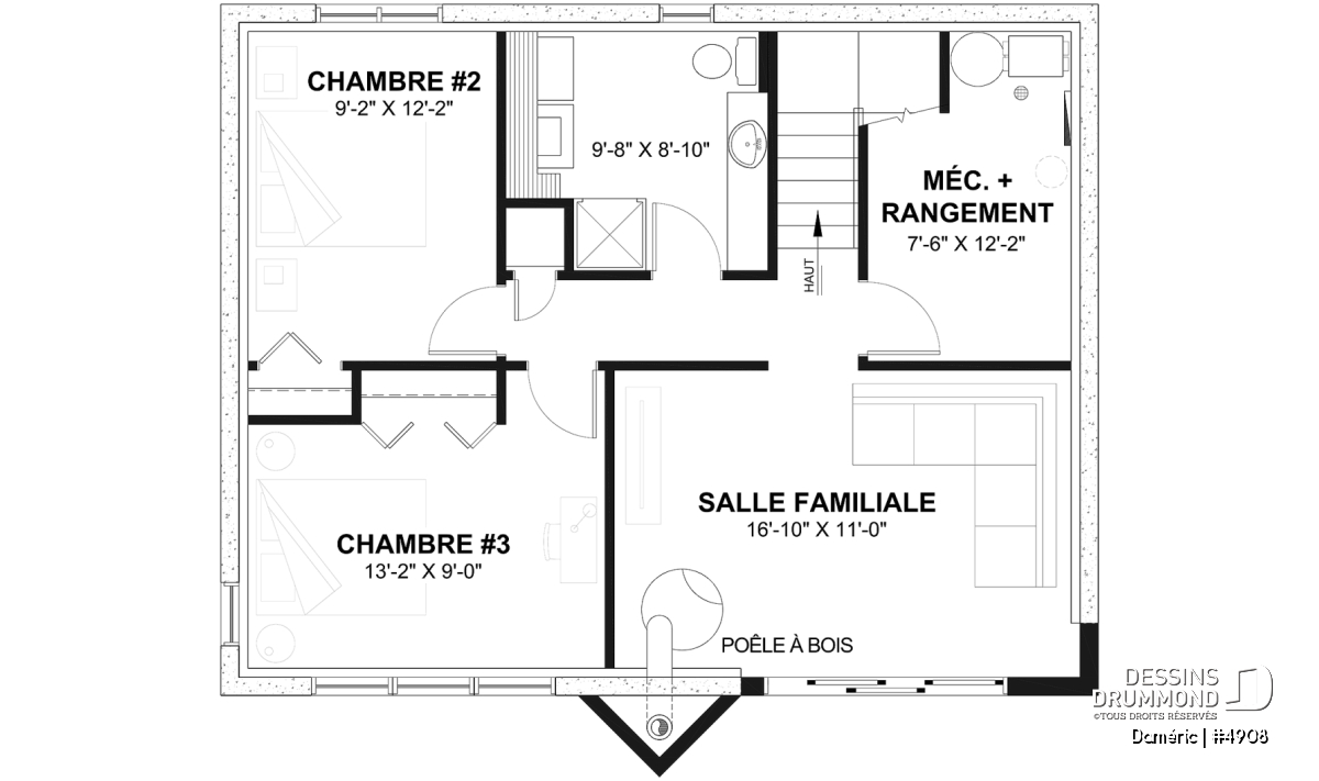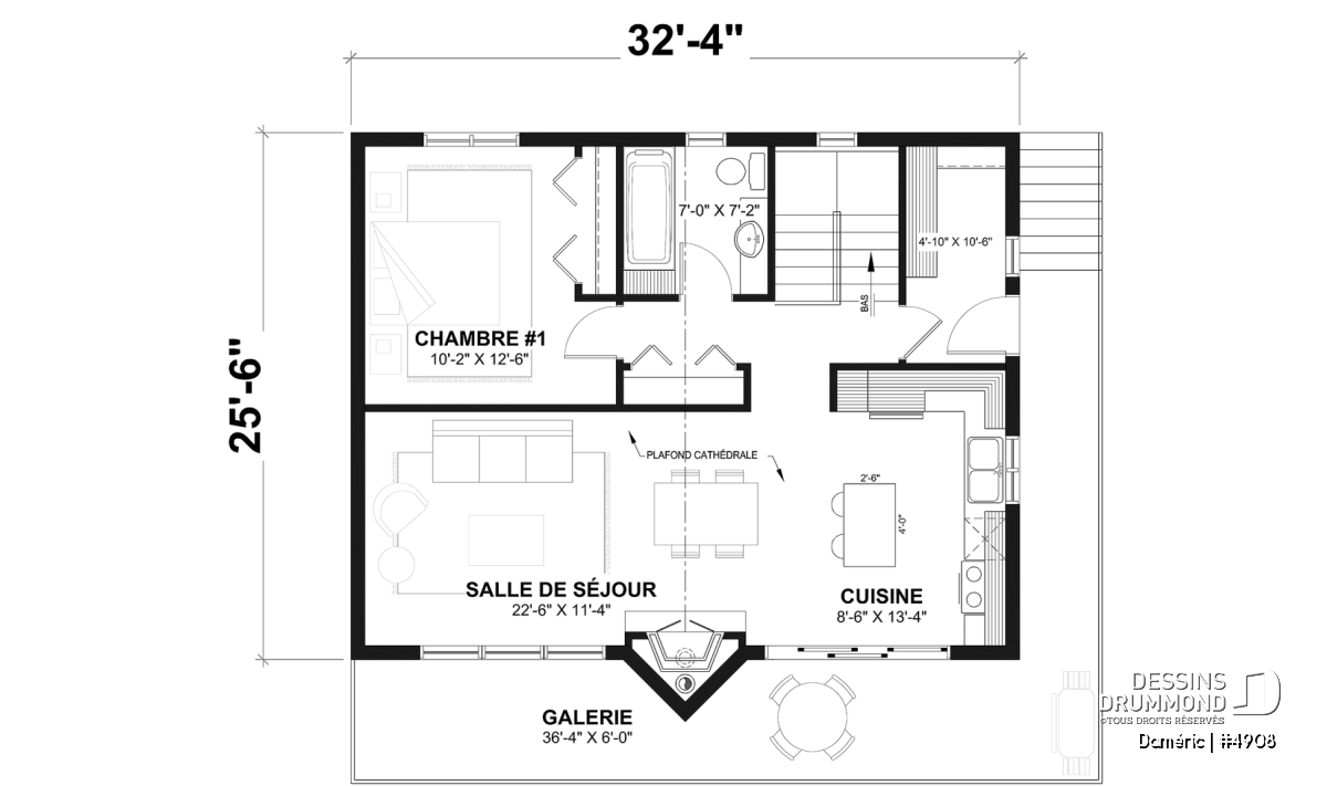 Le plan de maison DAMÉRIC (#4908) nous propose une maison de style chalet champêtre avec immense fenestration et 1 648 pieds carrés.