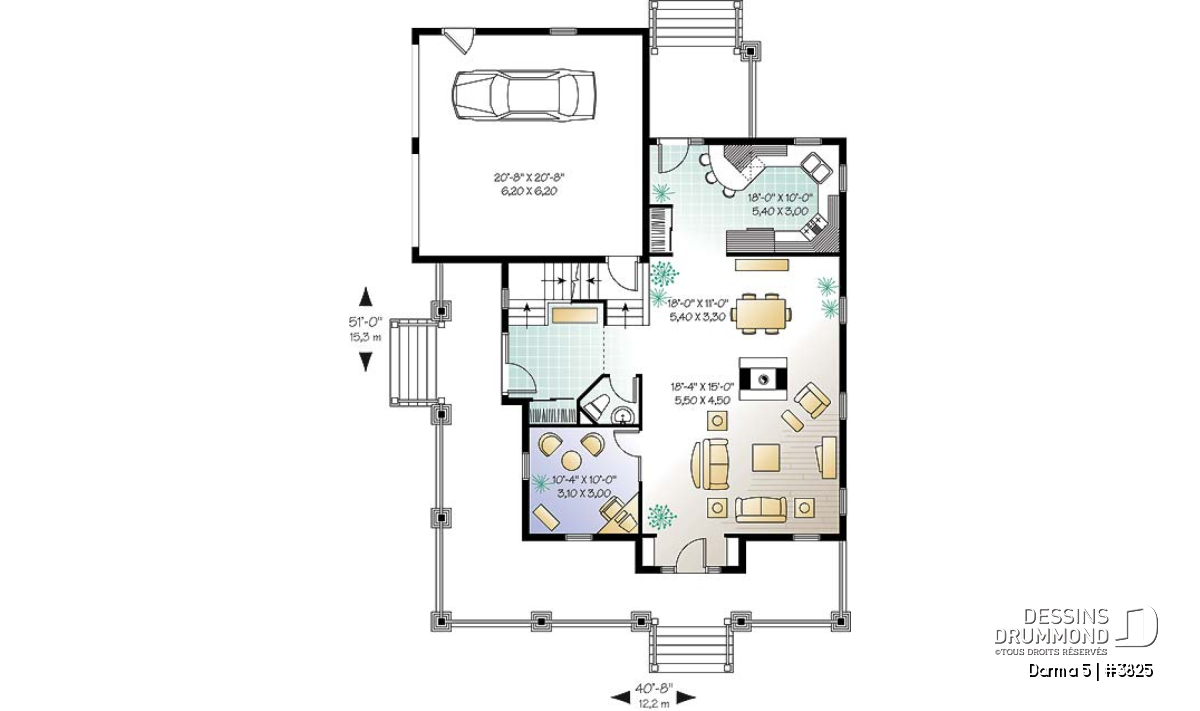 Largeur 40'8" Profondeur 51'0"